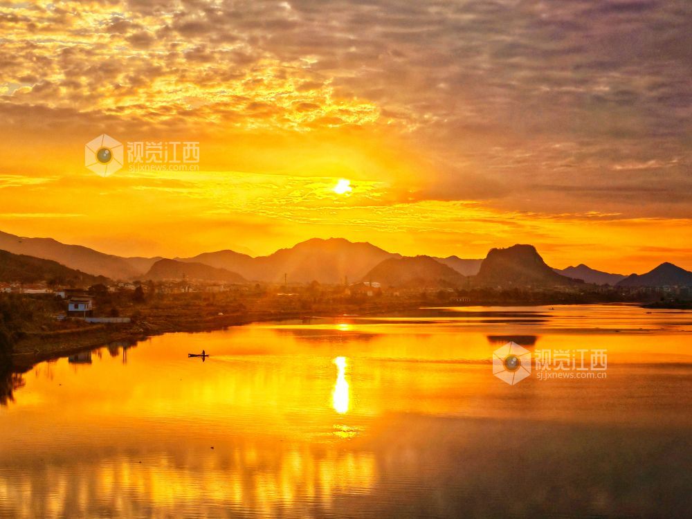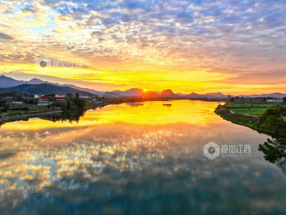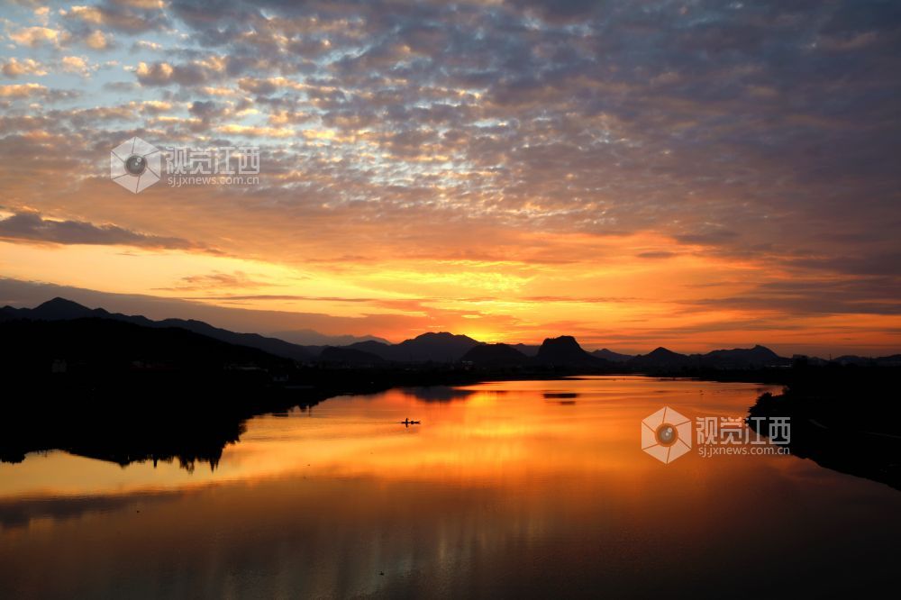 2024年11月26日,一场冬日晚霞出现在江西省分宜县分宜镇芦塘村上空。傍晚时分,远山、河流、房屋在缤纷霞光的映照下,呈现出一幅唯美的多彩画卷,美不胜收。