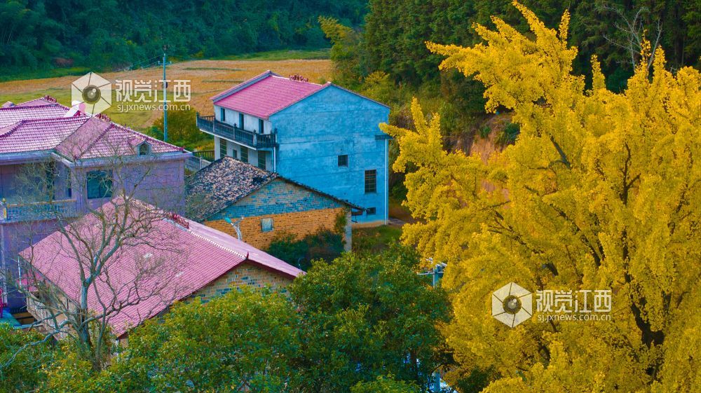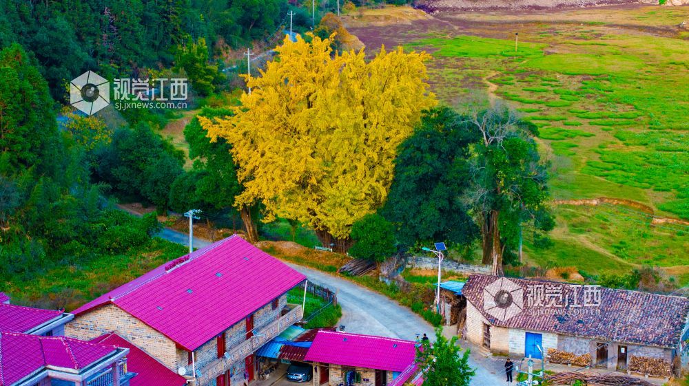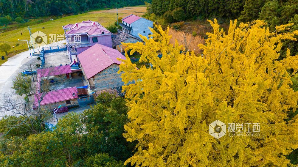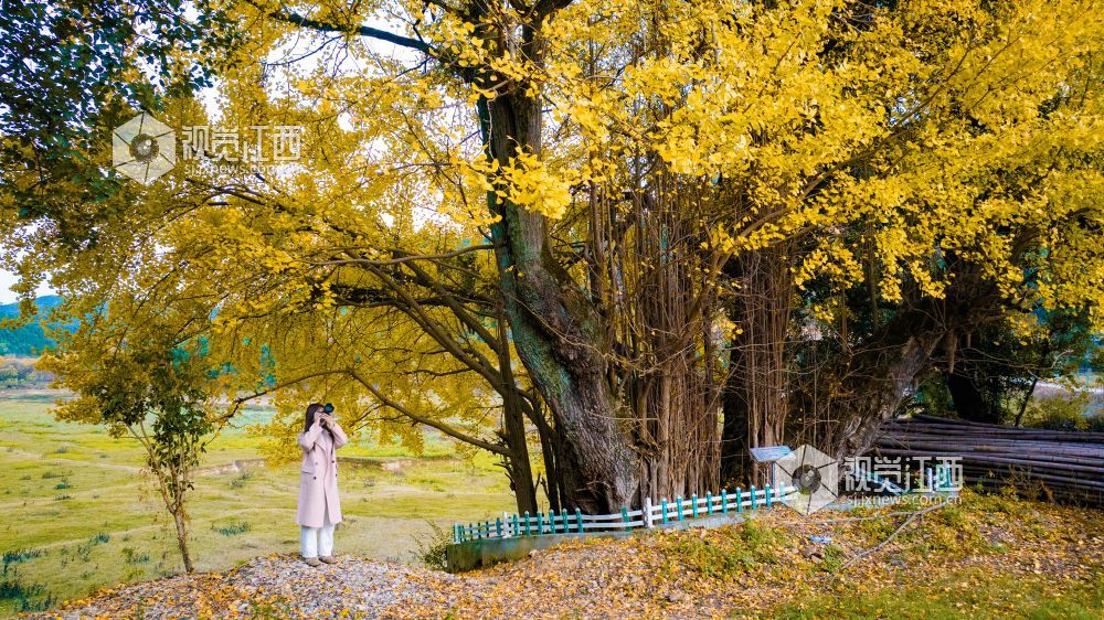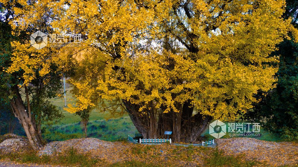12月1日,在江西省吉安市峡江县金江乡上北坑村,有一株千年银杏“身披”金装,在阳光照射下熠熠生辉,成为万安水库里一道靓丽的风景线。据了解,这株古银杏树为国家一级保护古树,树高11米,冠幅平均8.5米,树龄超过1200年,却仍然硕果累累,是目前峡江县年龄最大的一棵银杏树。