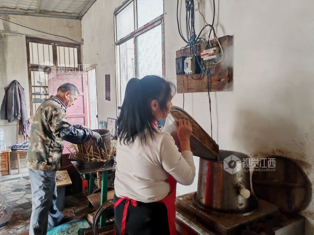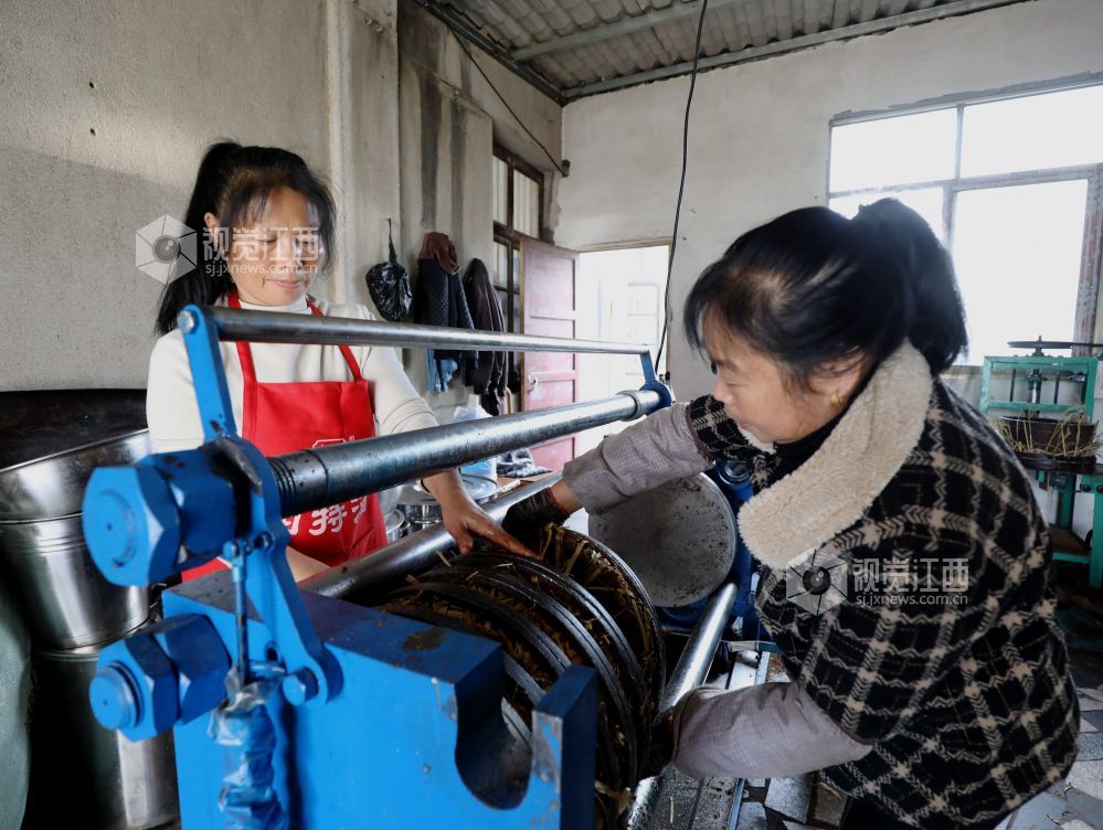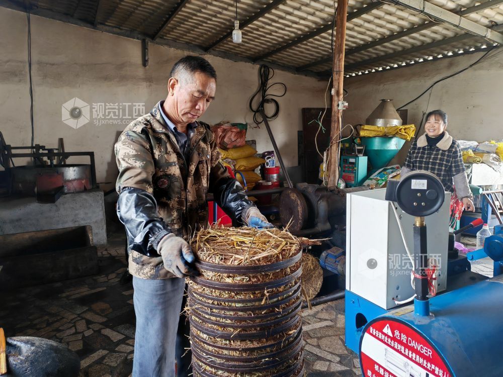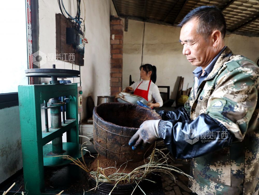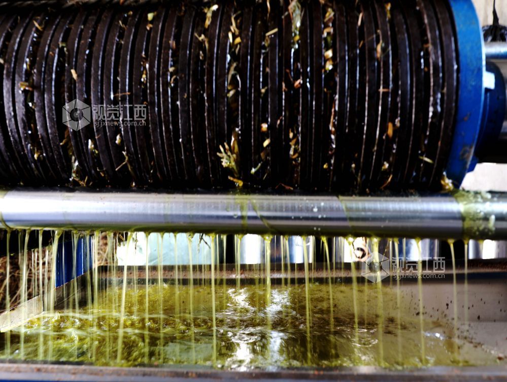 2024年12月3日,在江西省分宜县分宜镇大台村榨油坊,工作人员正在有条不紊压榨金灿灿的茶油。时下,正是油茶籽榨油旺季。分宜县城乡各大小油茶加工厂里机械轰鸣,满屋山茶油芳香四溢,奏响了丰收的乐曲。