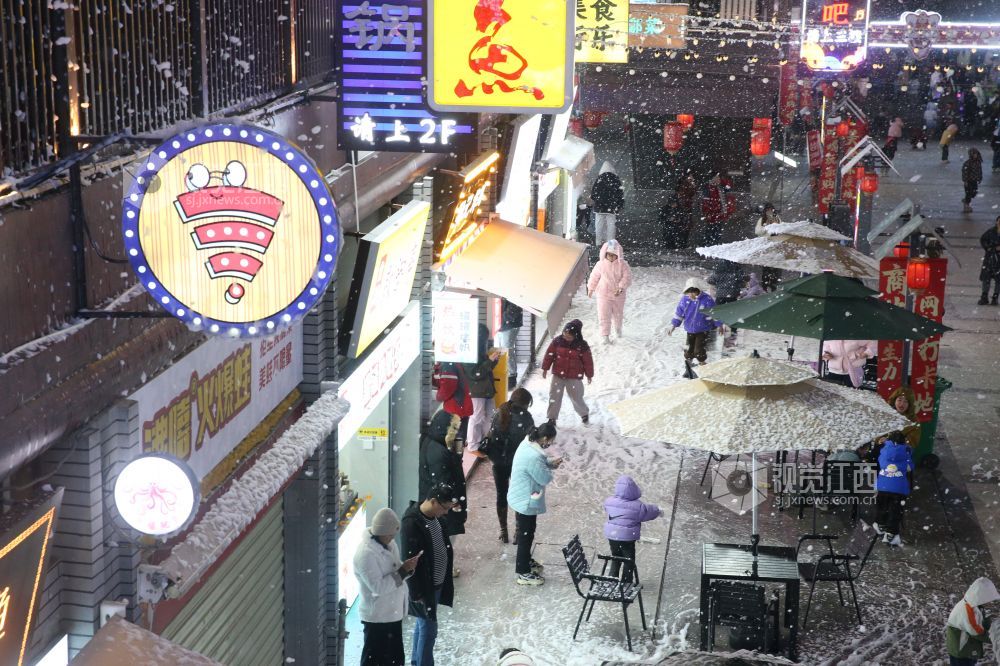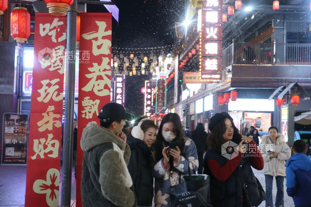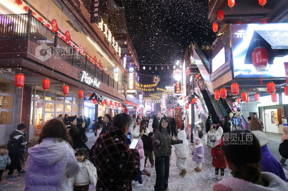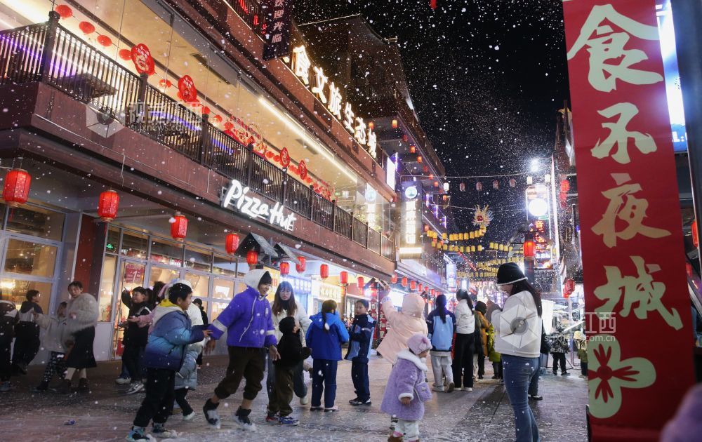 2025年1月1日,新年第一天,江西省鄱阳县城文和里人流涌动,热闹非凡。市民、游人来此游玩,赏夜景,品美食,共度元旦佳节。