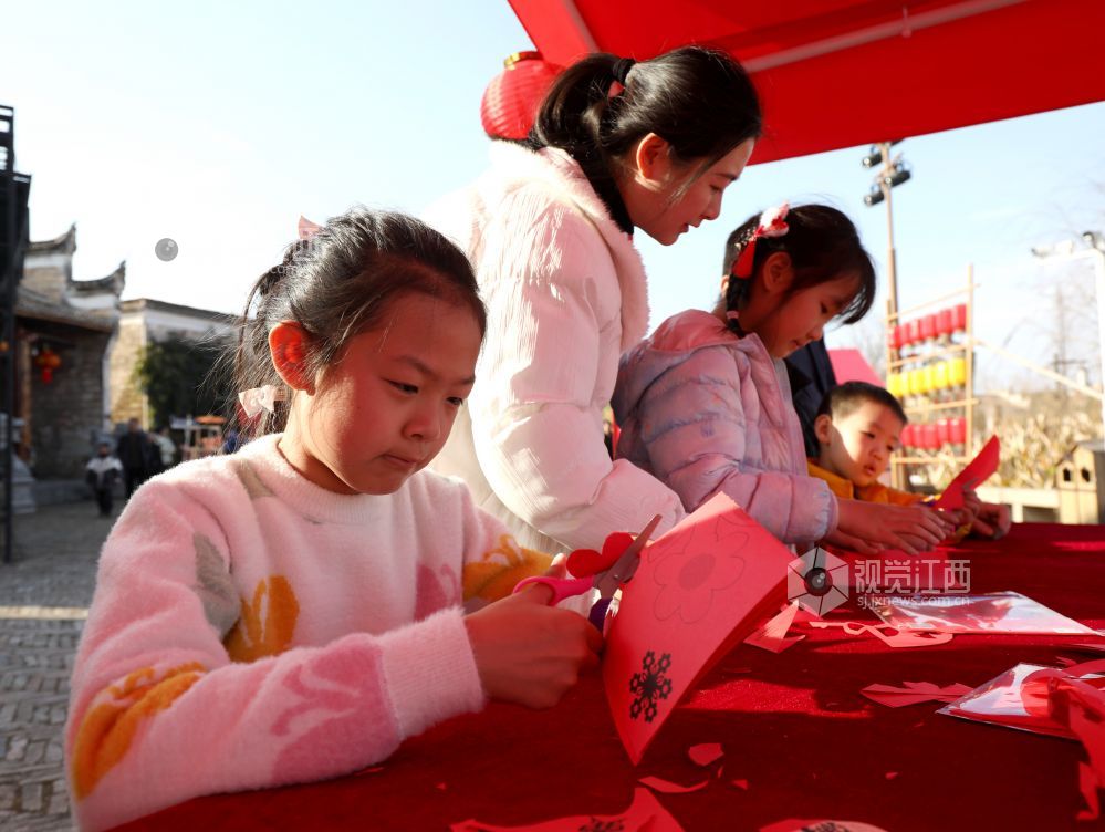 当日,分宜县在介桥古村景区举办体验“非遗过大年”活动。游客和市民通过沉浸式场景设置,可以现场体验春节民俗、剪纸、扎染、拓印年画等非物质文化遗产项目,感受传统节日文化的魅力和浓浓的年味。