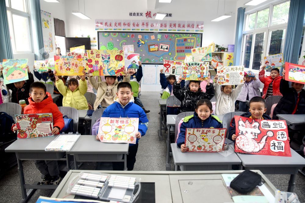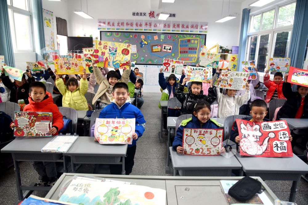 2025年2月14日,江西省抚州市南丰县某小学一年级(4)班开展以“蛇年新春绘新篇”为主题的手抄报绘画活动,引导同学们绘出新学期新起点新期望。