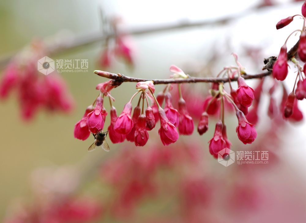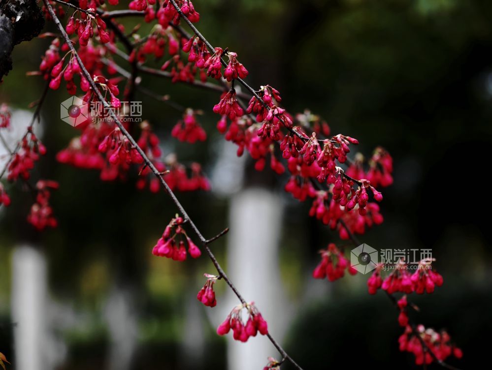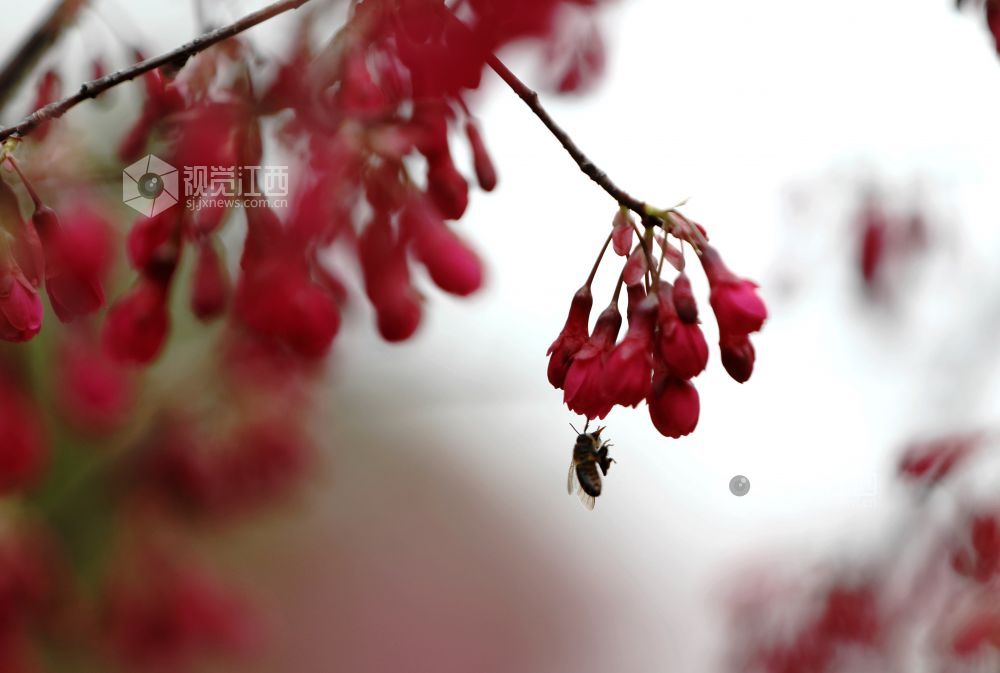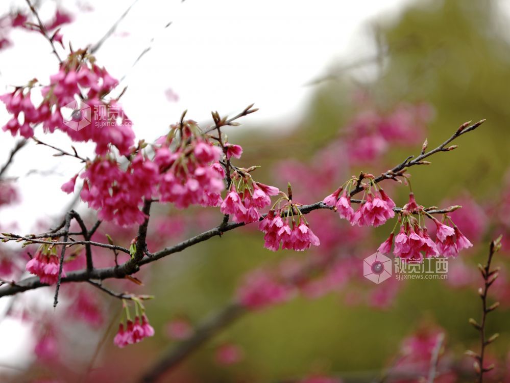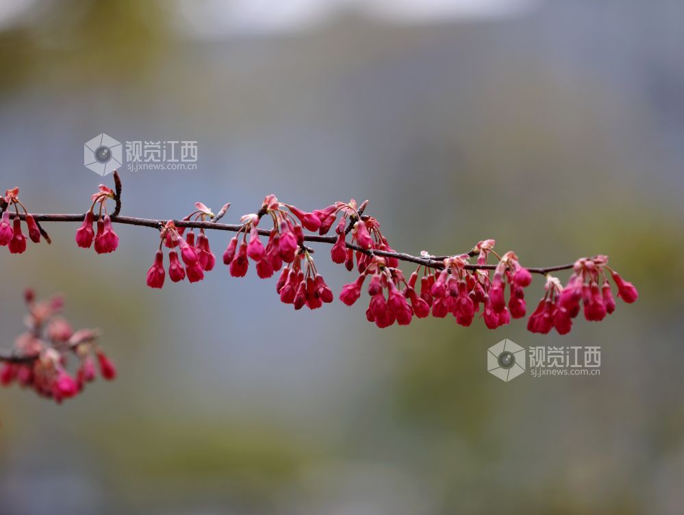 2025年2月18日,江西省分宜县开物大道两旁的钟花樱美丽绽放,春天的气息扑面而来,将县城装扮得多姿多彩。