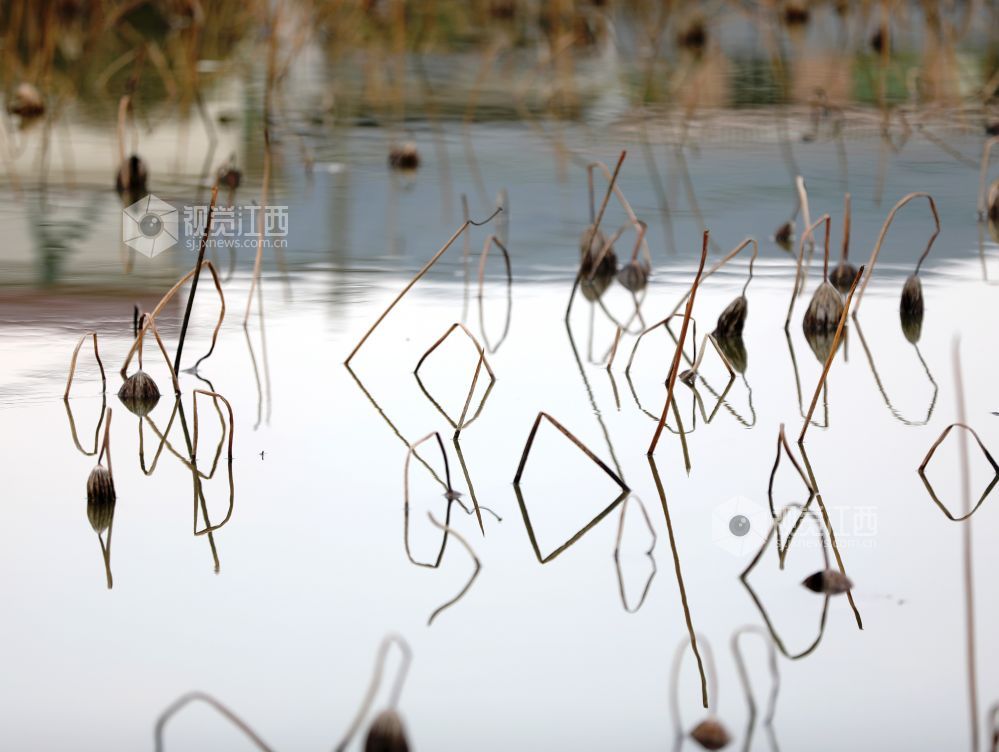 残荷瑟瑟立池塘,春来再展绿衣裳。2025年3月17日,摄影爱好者在江西省分宜县洞村乡霞贡村拍摄的残荷。阳春三月,行走在乡村田地,荷塘中枯萎的荷花叶柄、莲蓬在水面上姿态各异,风吹影动,成为春天里一道独特的风景。随着气温渐渐转暖,残荷下的生命正在孕育,不久就会萌芽。