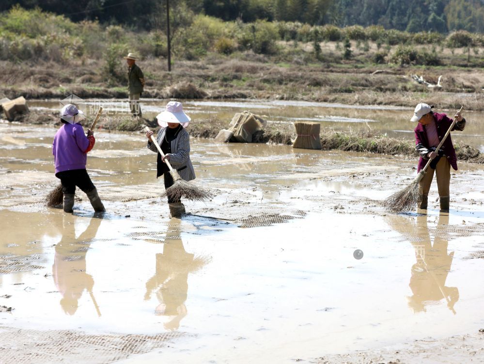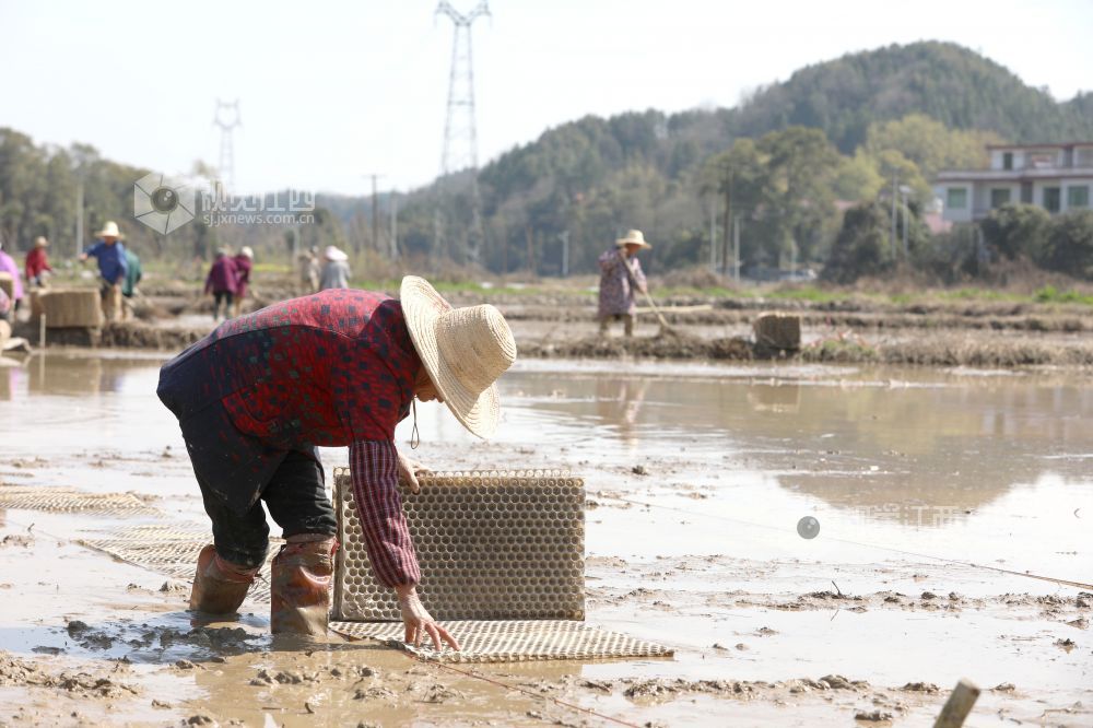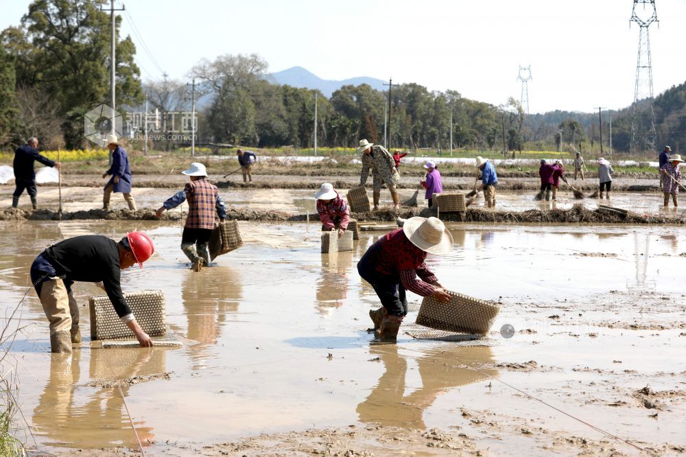 2025年3月20日,在江西省分宜县钤山镇堂下村育秧基地,农民正进行春播育秧作业,田间地头一片忙碌景象。当日是春分节气,分宜县各地农民纷纷抢抓晴好天气开展农事活动,确保春耕备耕有序行进。