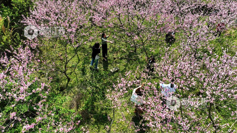 2025年3月25日,在江西省分宜县分宜镇洞源村,游客穿梭在桃园里赏花、游玩。
