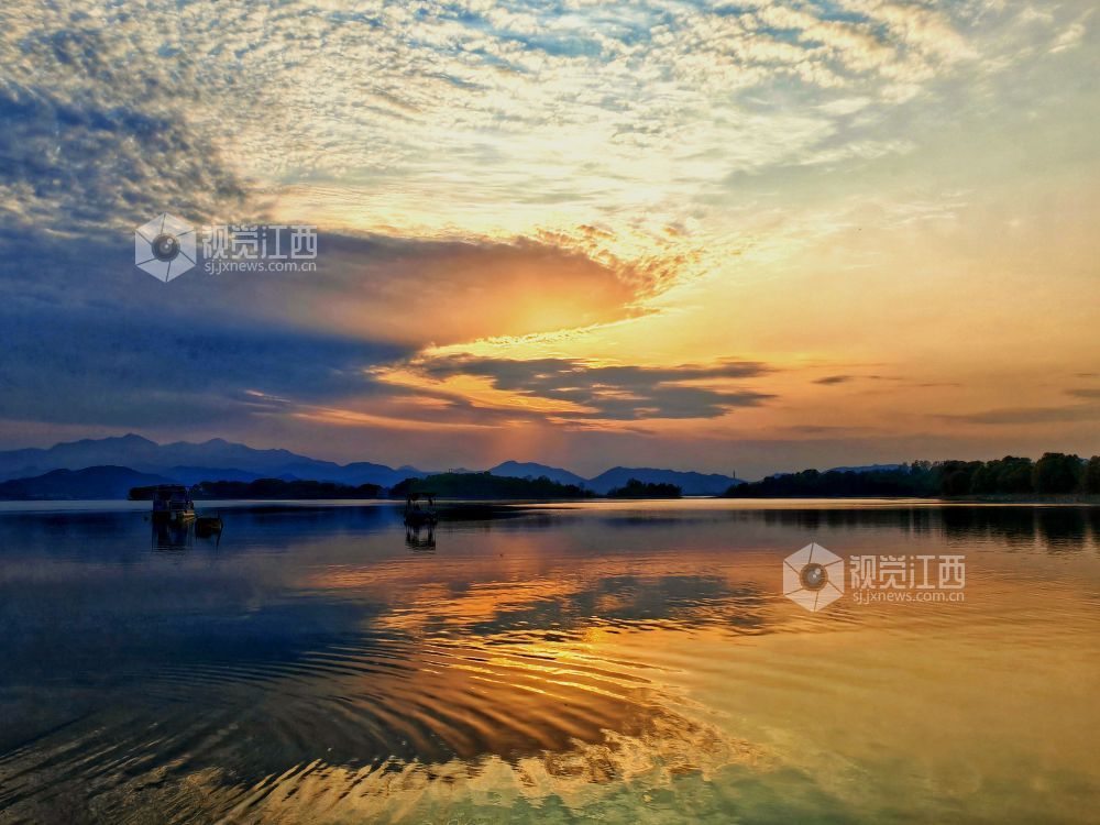 江西分宜:夕阳美如画 湖畔醉晚霞