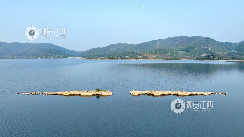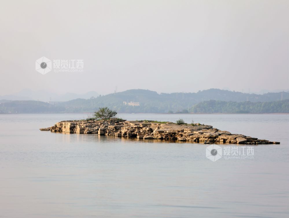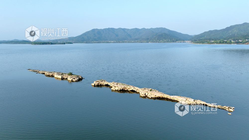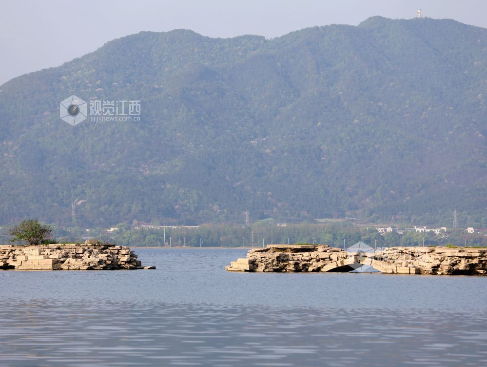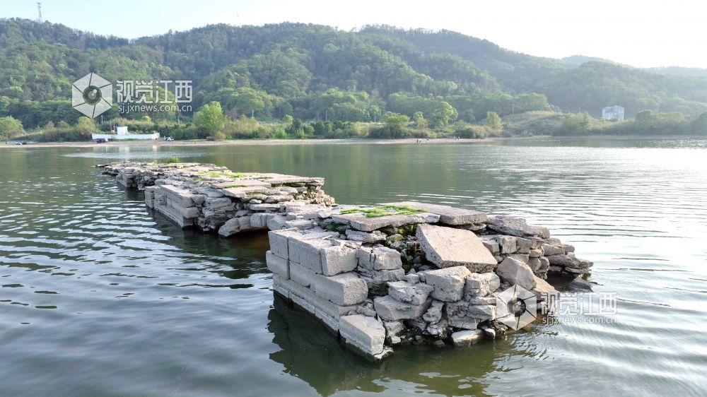2025年4月10日,受天气和水位影响,江西省分宜县钤阳湖景区内建于明朝嘉靖三十五年的万年桥浮出水面。