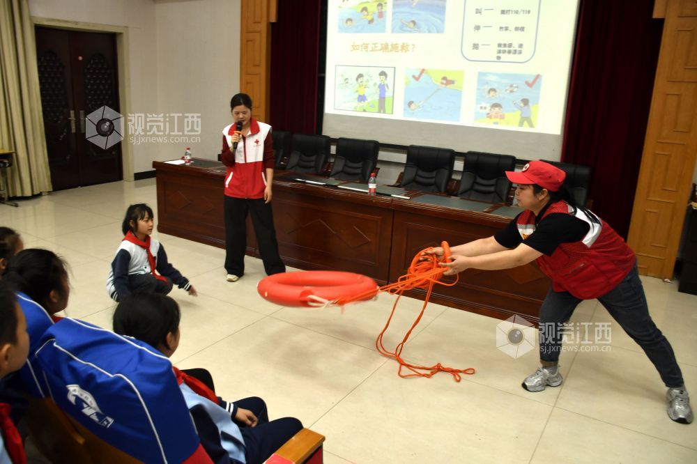 活动中,红十字志愿者向学生们宣讲防溺水安全知识,传授救援技能,提升师生自救互救能力,从源头上预防和遏制小学生溺水事故的发生。