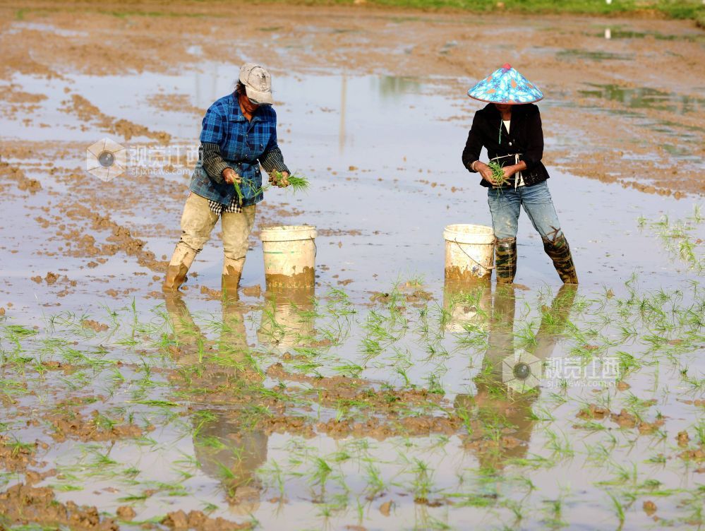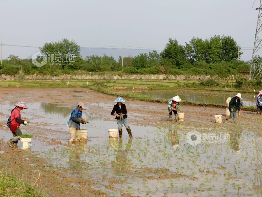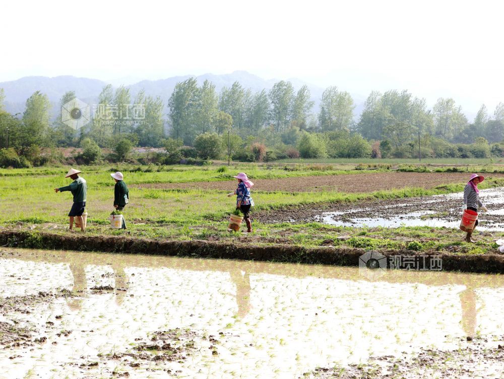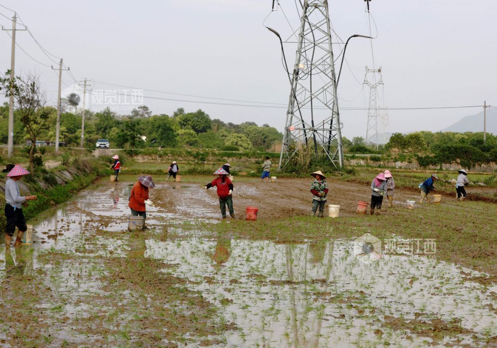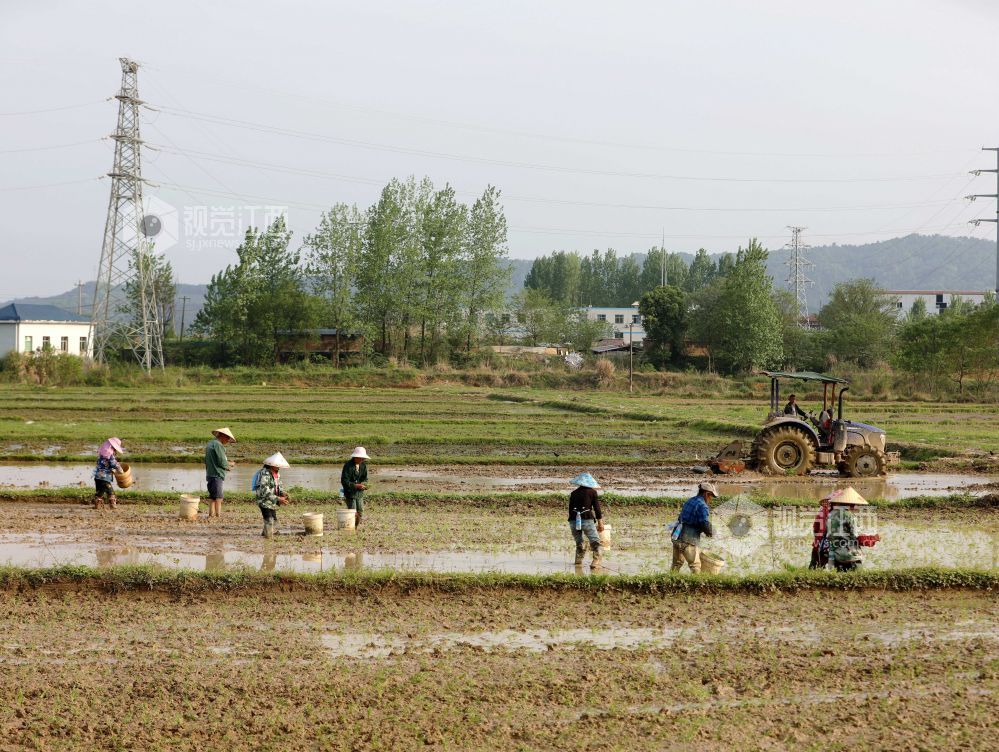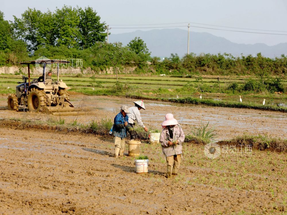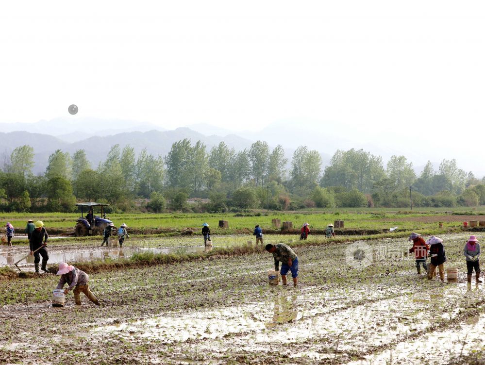 眼下正是早稻栽插时节,2025年4月18日,江西省分宜县分宜镇横溪村,农民们正在稻田里翻地和抛撒早稻秧苗,田野间呈现出一派繁忙的春耕景象。