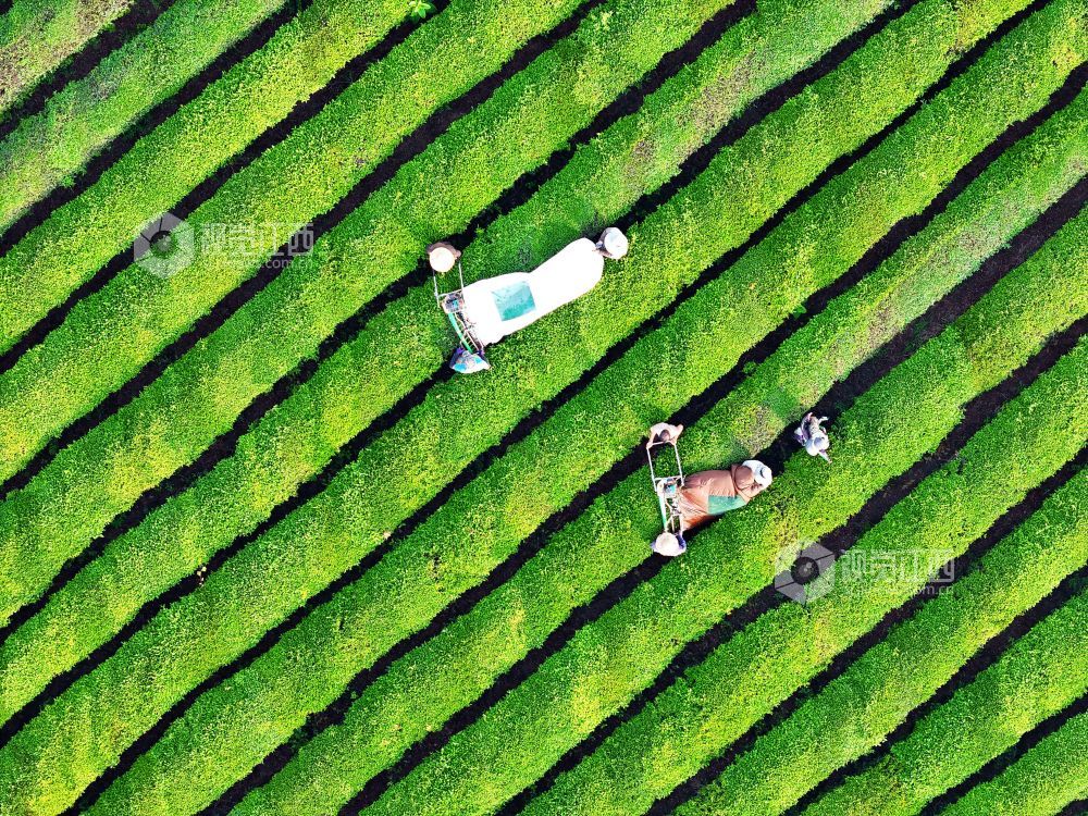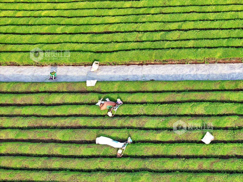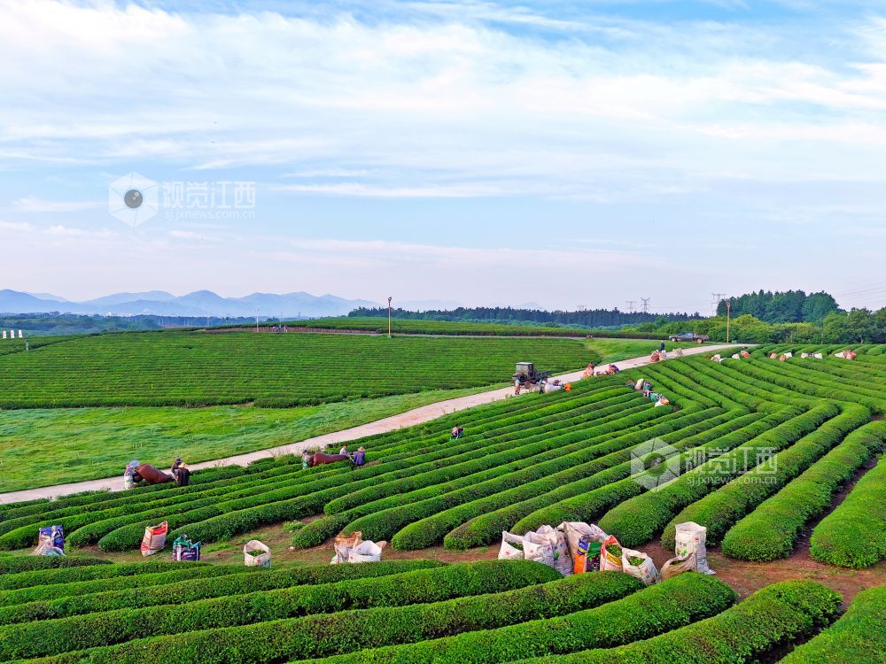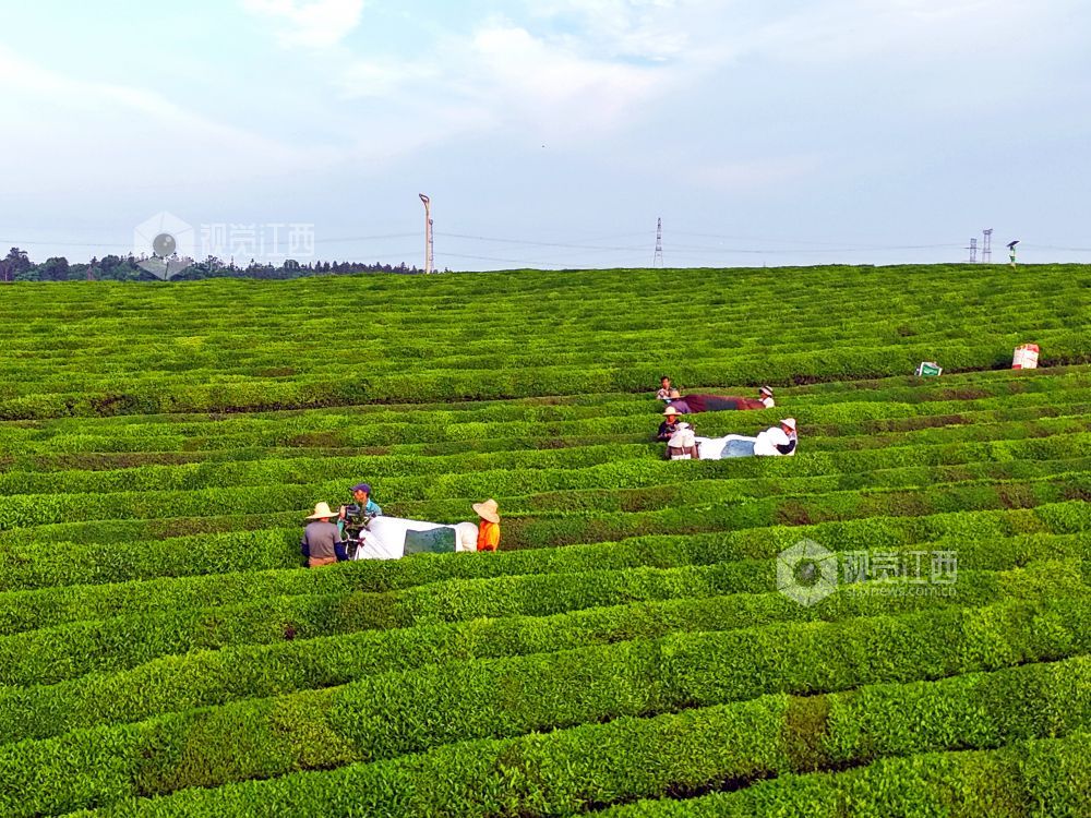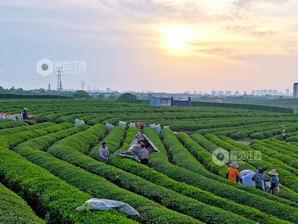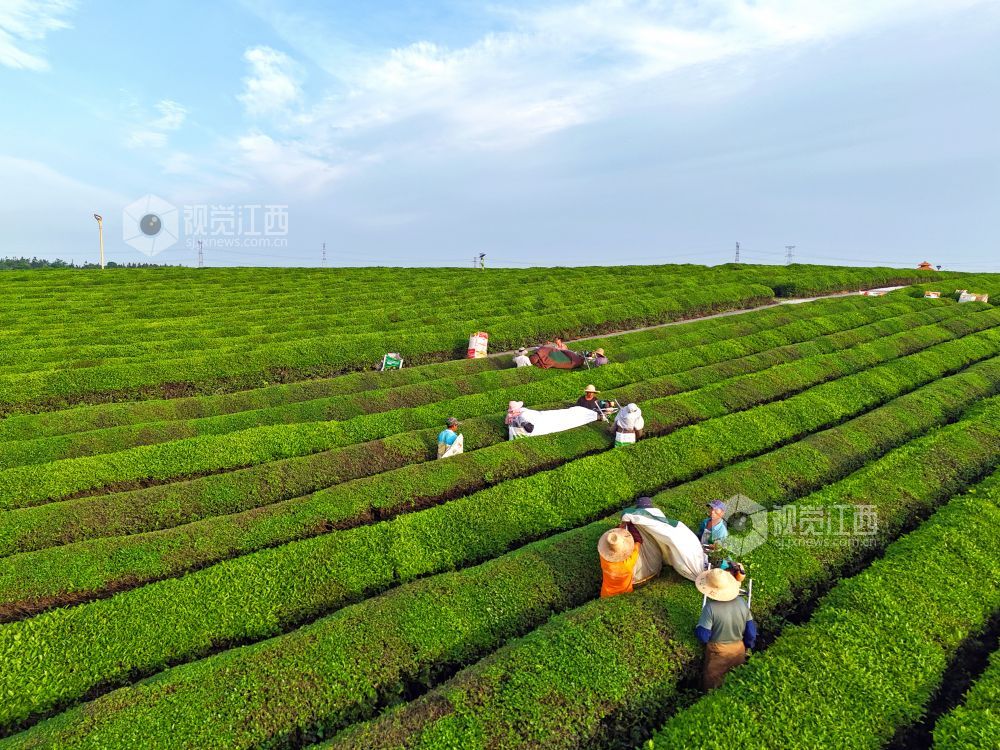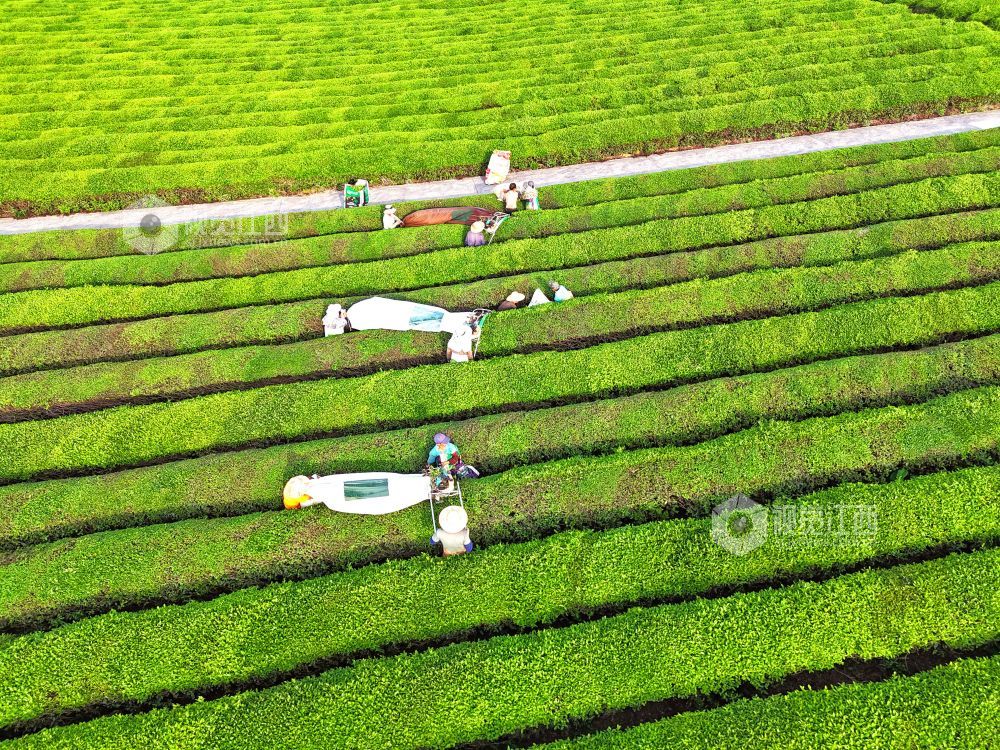 2025年5月3日,在江西省赣江新区神农岭,千亩生态茶园郁郁葱葱,机声隆隆,茶农们抢抓农时,忙碌着用采茶机采摘今年最后一批春茶,供应市场。