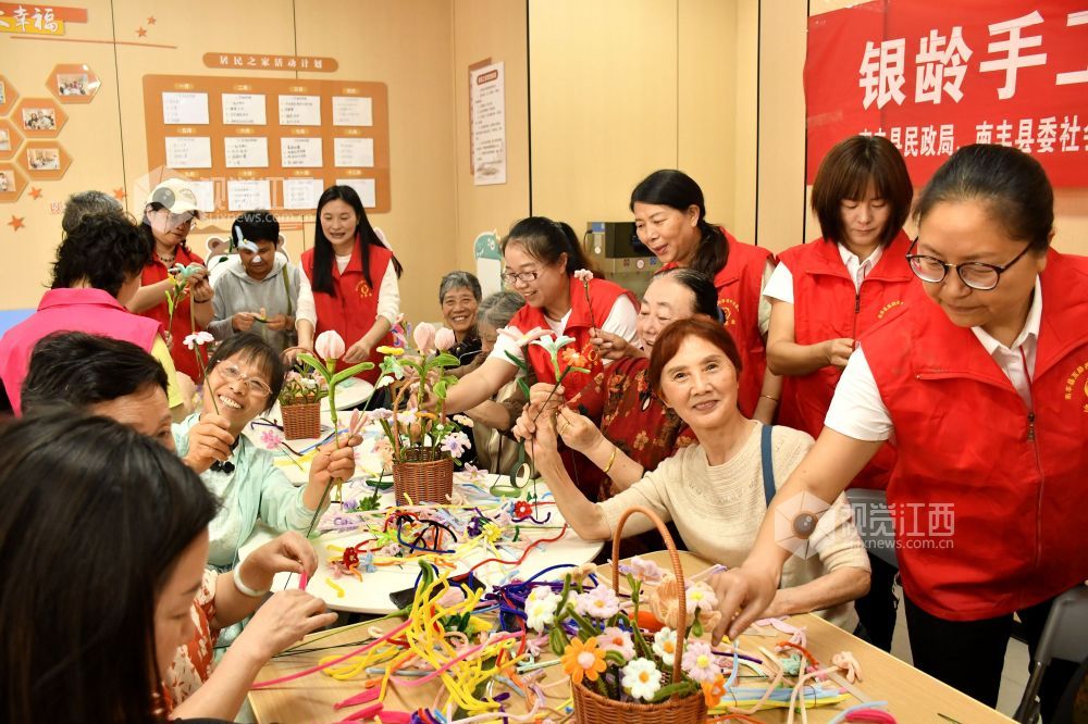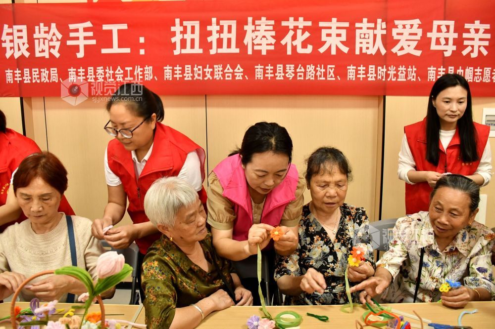 2025年5月10日,江西省抚州市南丰县民政局、县委社工部、时光益站等部门开展的“银龄手工:扭扭棒花束献爱母亲节”活动走进琴台路社区居民之家。