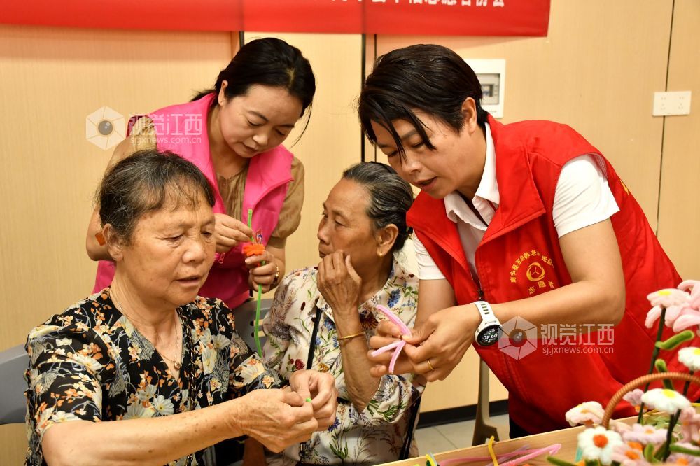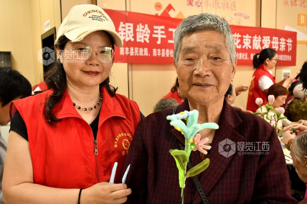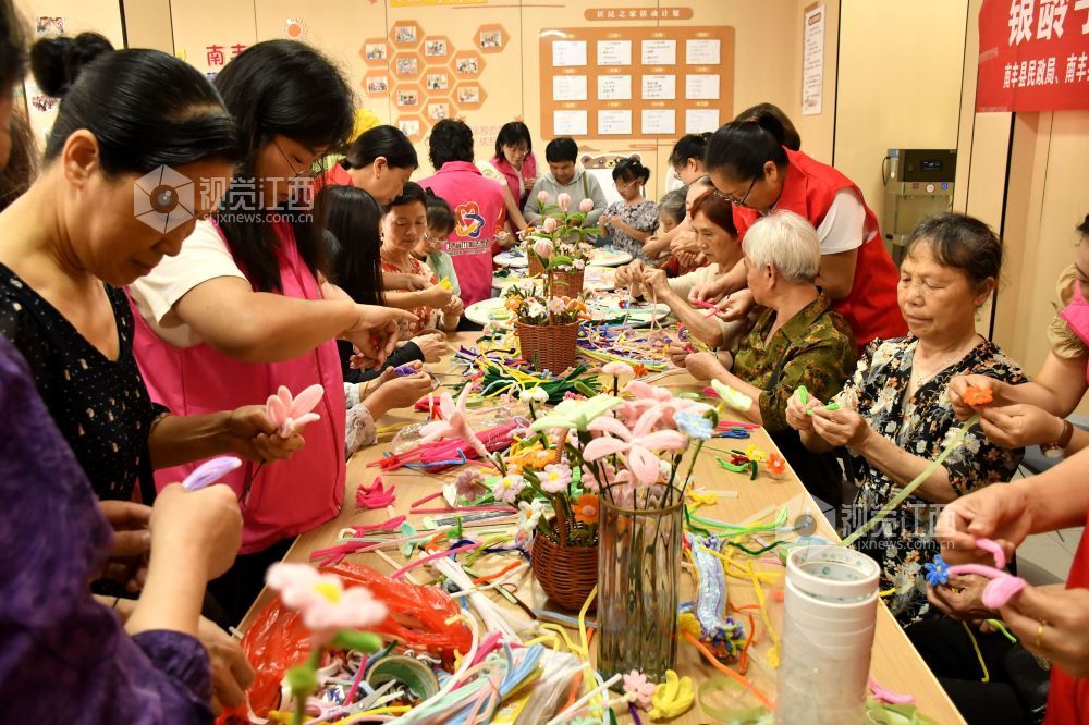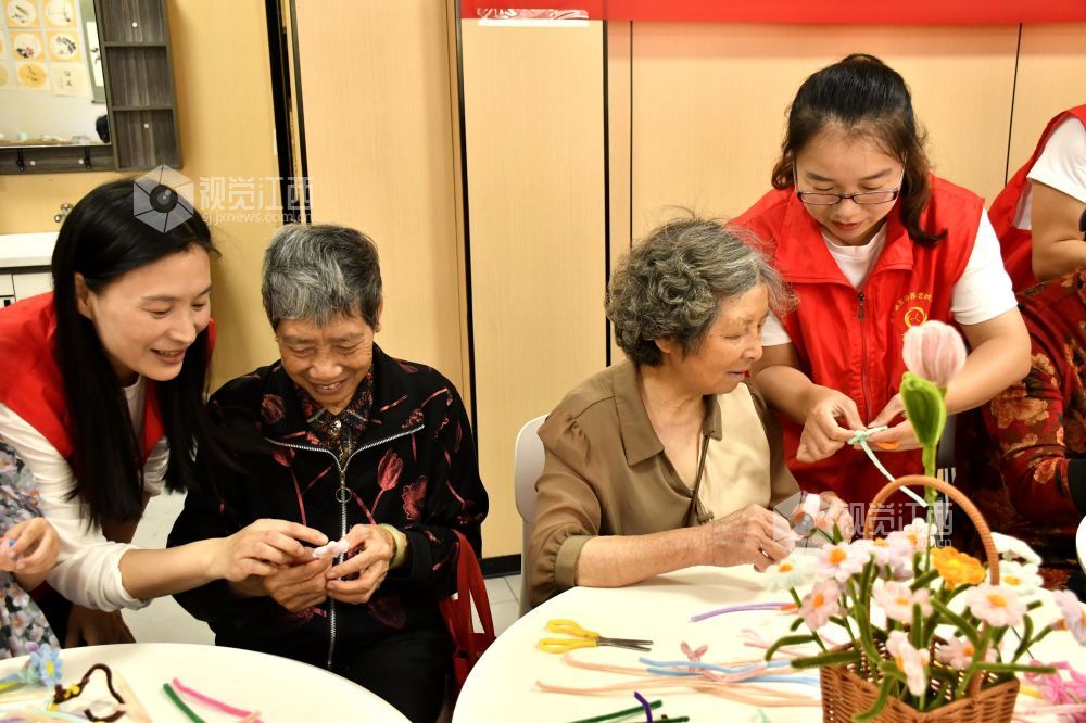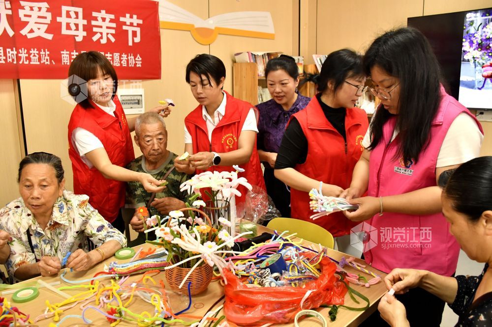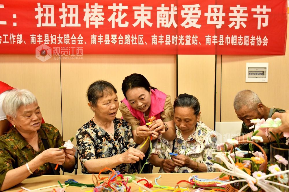 活动中,志愿者们与社区老年人一起制作不同形状的扭扭棒花束,营造浓厚的感恩母亲、关爱母亲的节日氛围,让老年人感受到社区的温暖和关怀。
