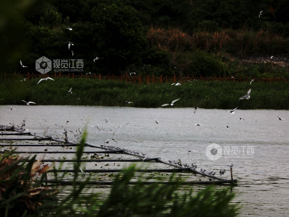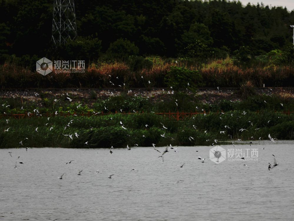 2025年5月10日,在江西省分宜县介溪湿地公园,成群的夏候鸟——须浮鸥正在水面上嬉戏觅食。近年来,当地持续加大修复和?;な厣牧Χ?,为鸟类种群提供了良好的栖息环境,生物多样性不断丰富,吸引了白骨顶鸡、白琵鹭、须浮鸥、野生鸬鹚等候鸟在此栖息或迁徙途中补给。
