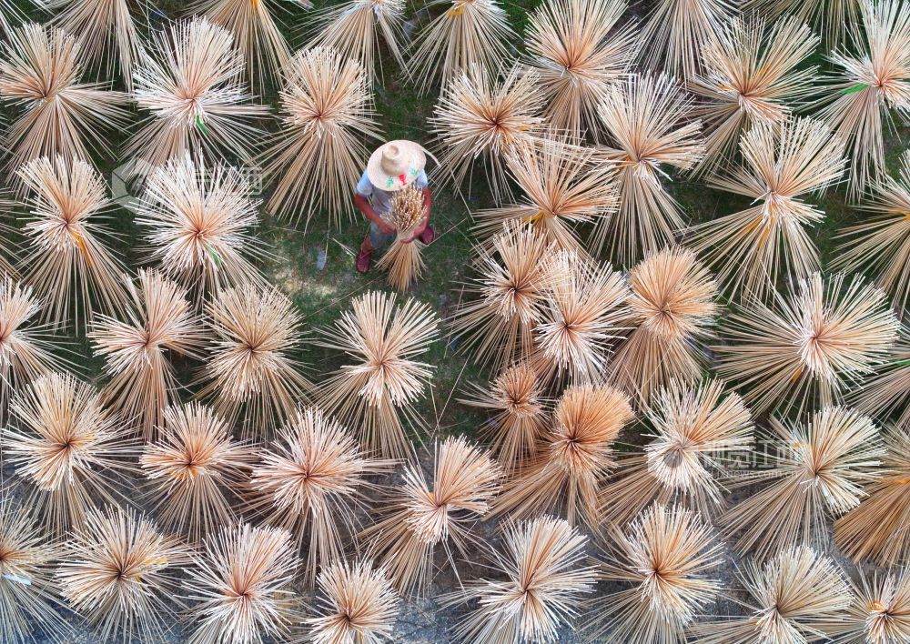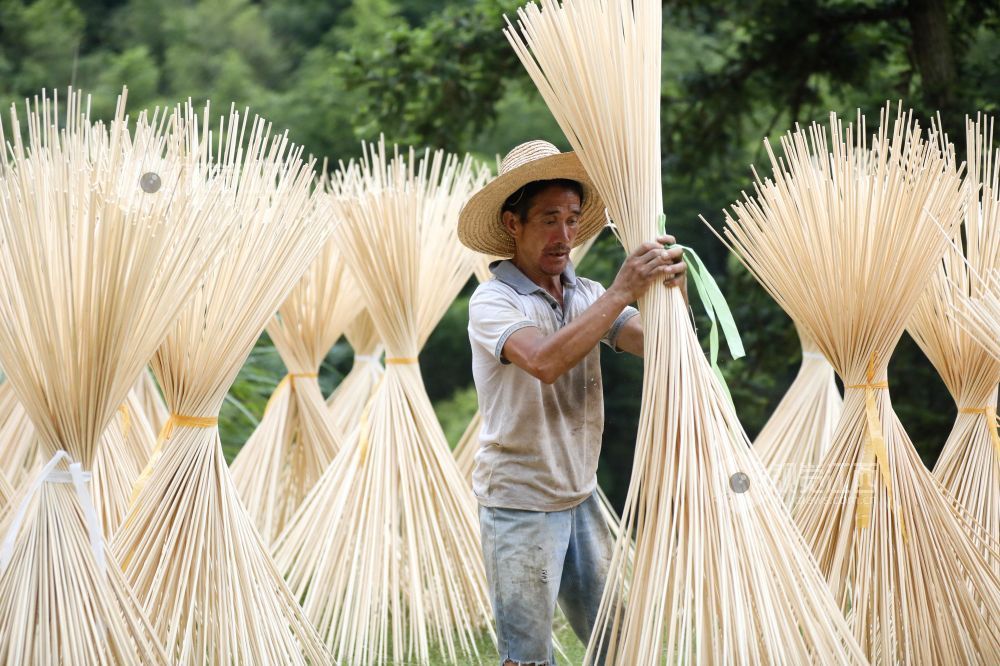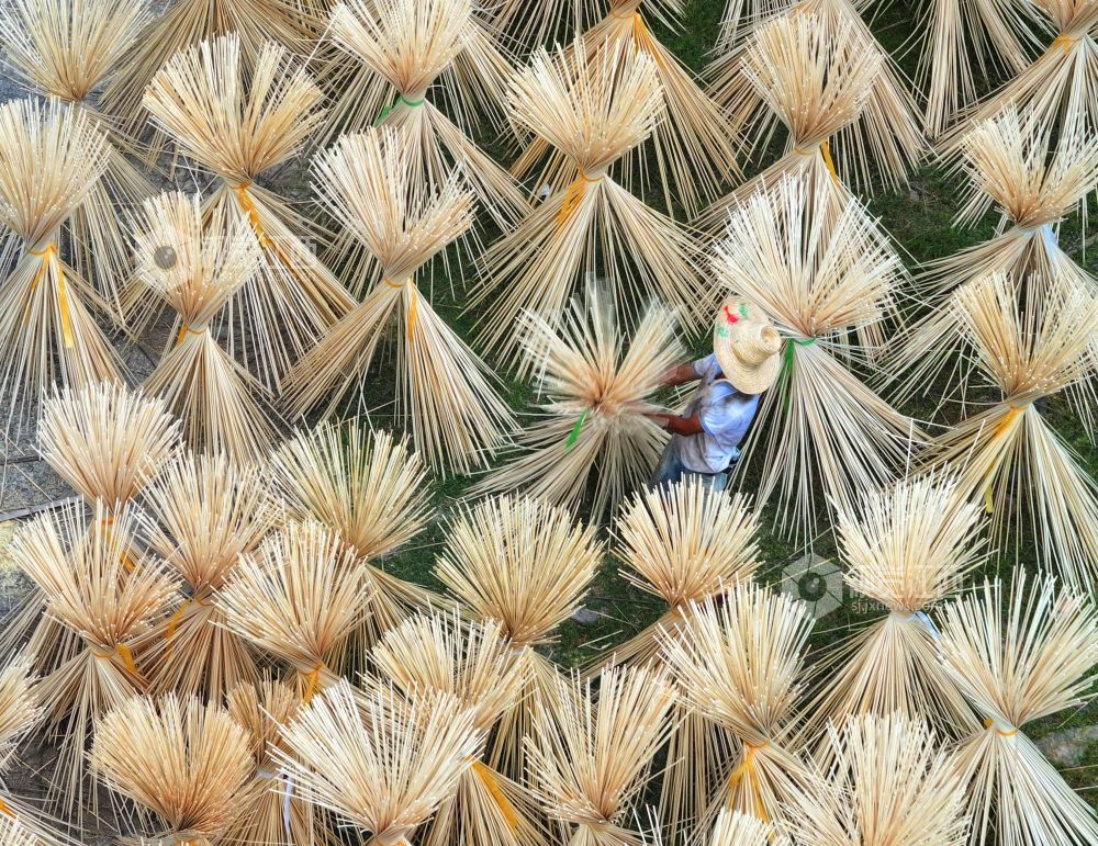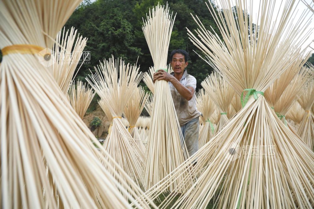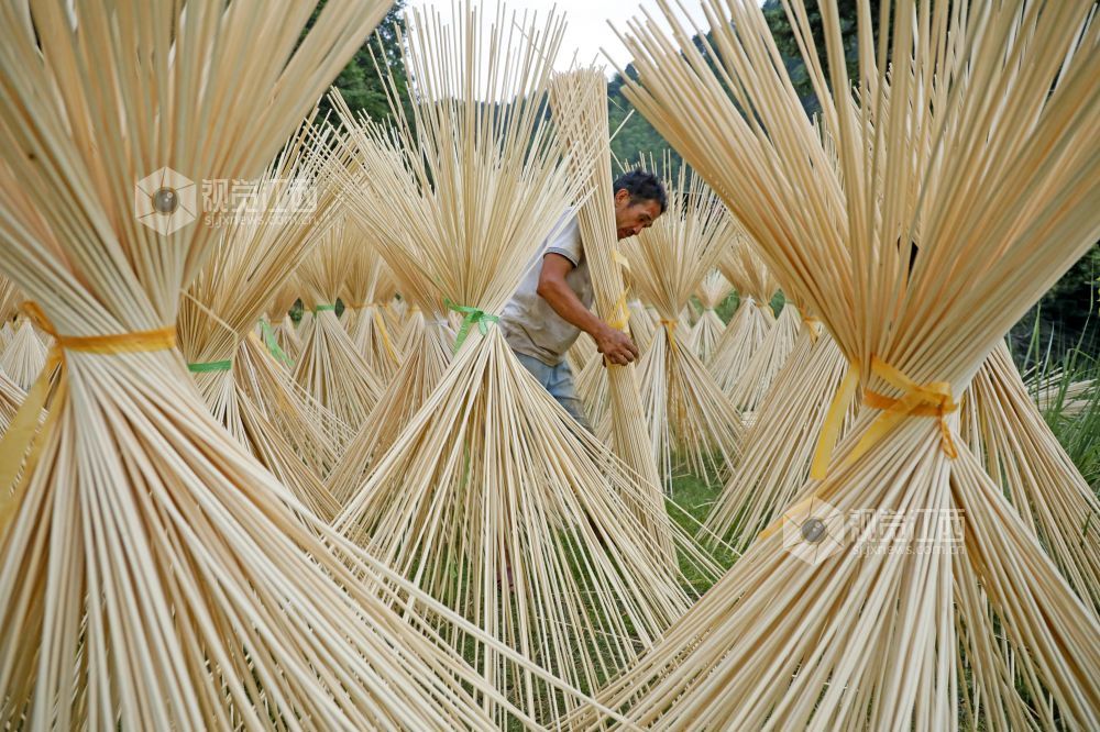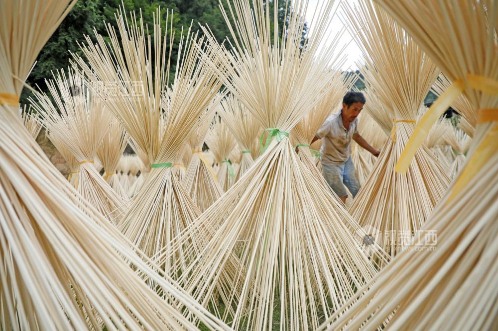 6月7日,江西省吉安市泰和县上圯乡芫头村,农民正在晾晒竹制半成品。江西泰和县上圯乡积极开发利用当地的毛竹资源,进行精深加工,提升毛竹的附加值,助力农民增收,带动乡村振兴。