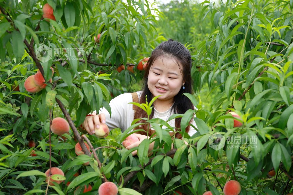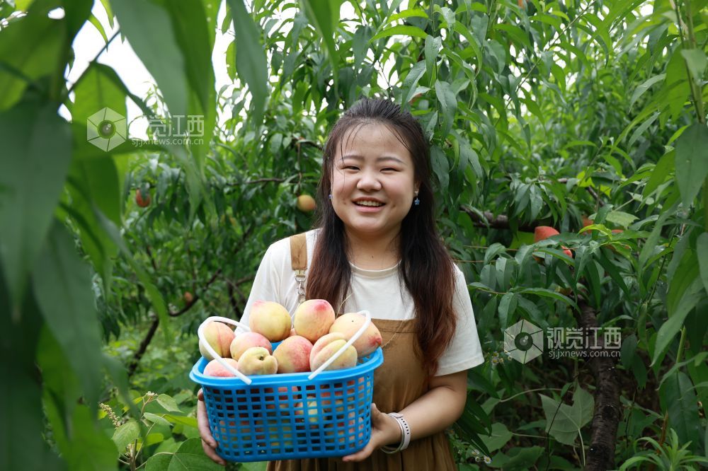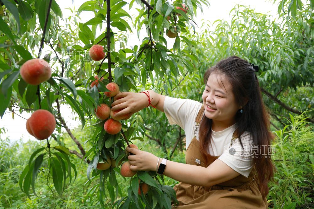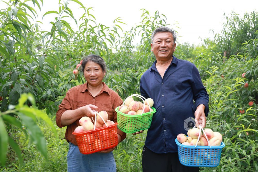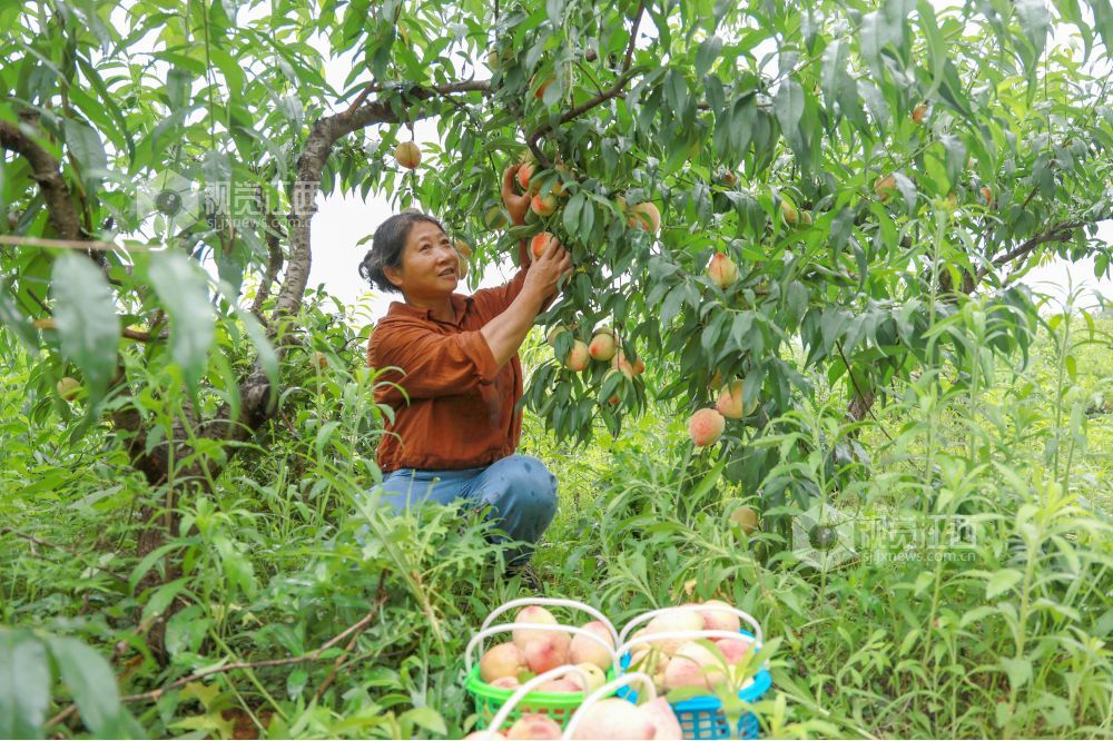 2025年6月10日,在江西省瑞昌市码头镇百亩桃园内,各种油桃、水蜜桃等水果挂满枝头,果农们忙着采摘、分拣、包装,供应市场。