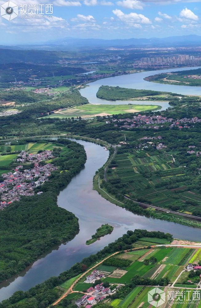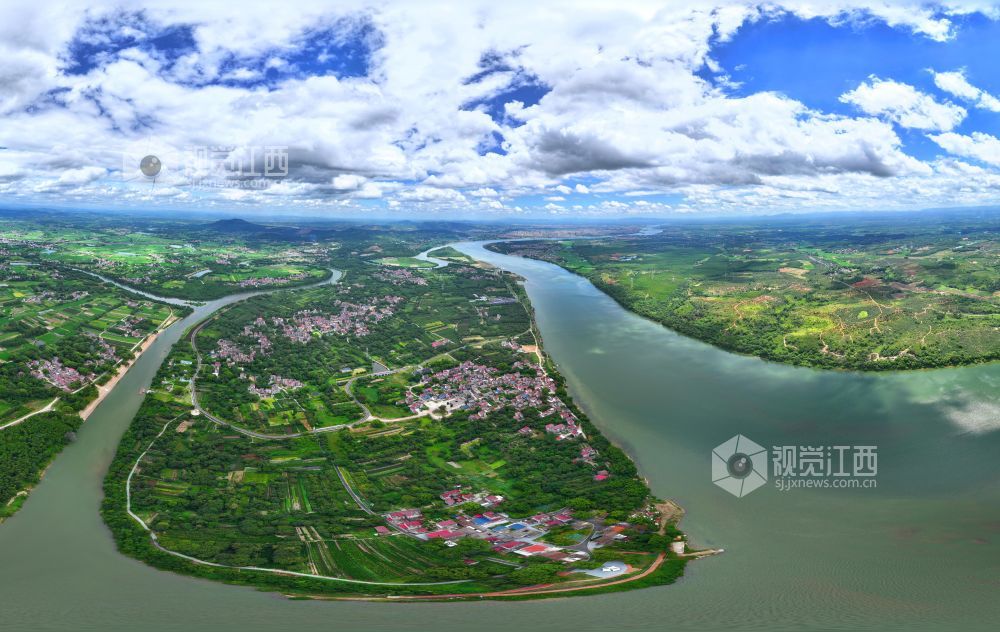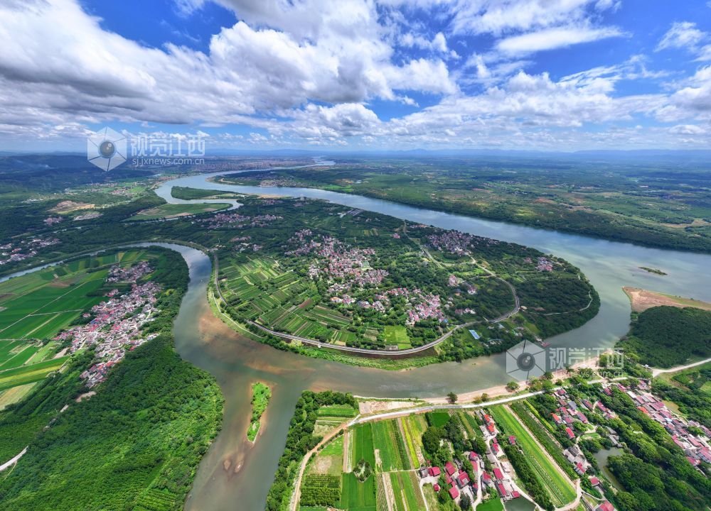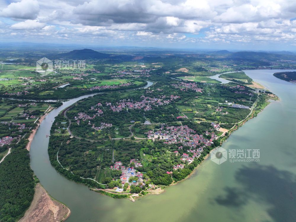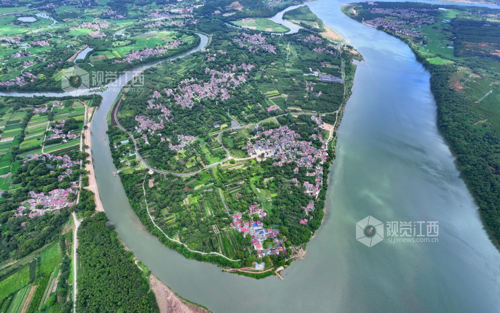 8月15日,江西省吉安市泰和县马市镇蜀口村,生态河流环绕,田园壮美如画。