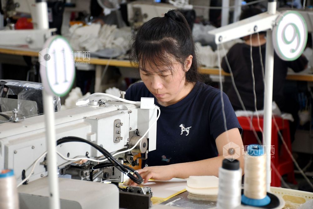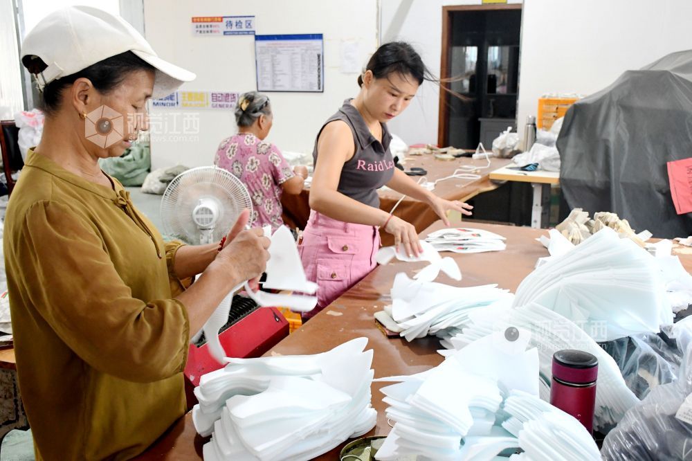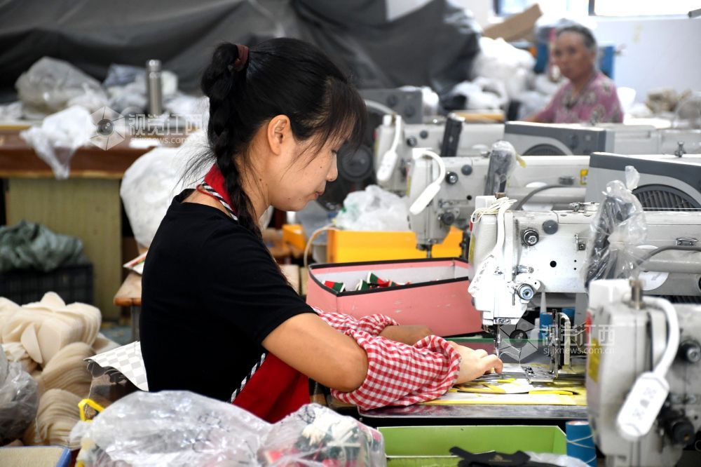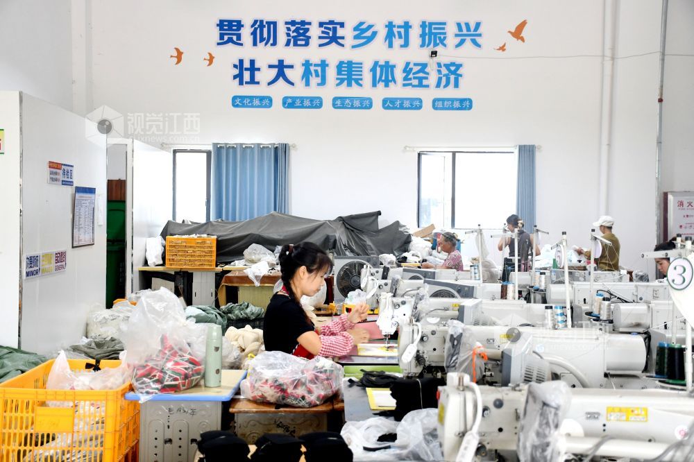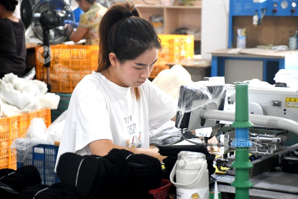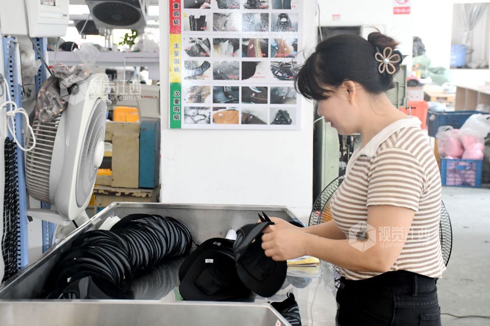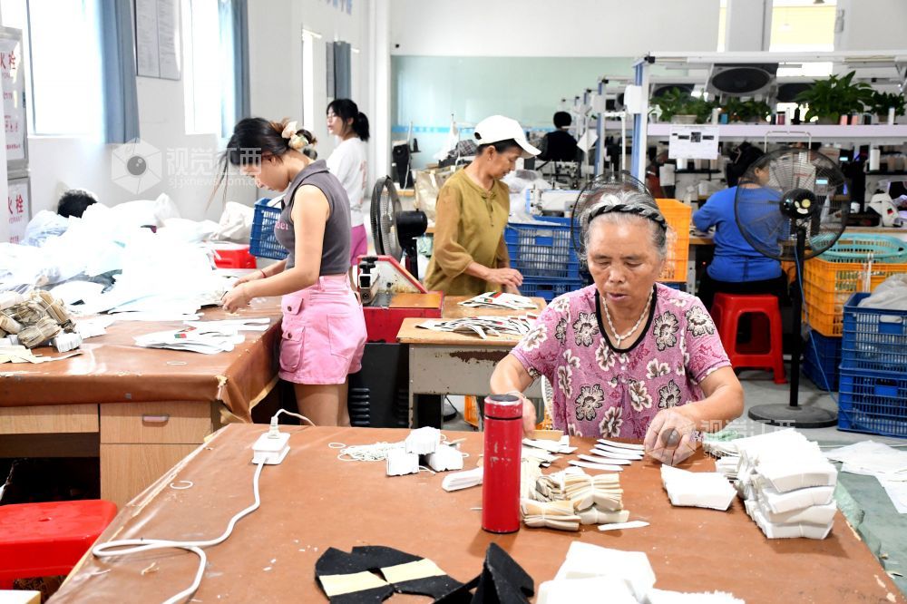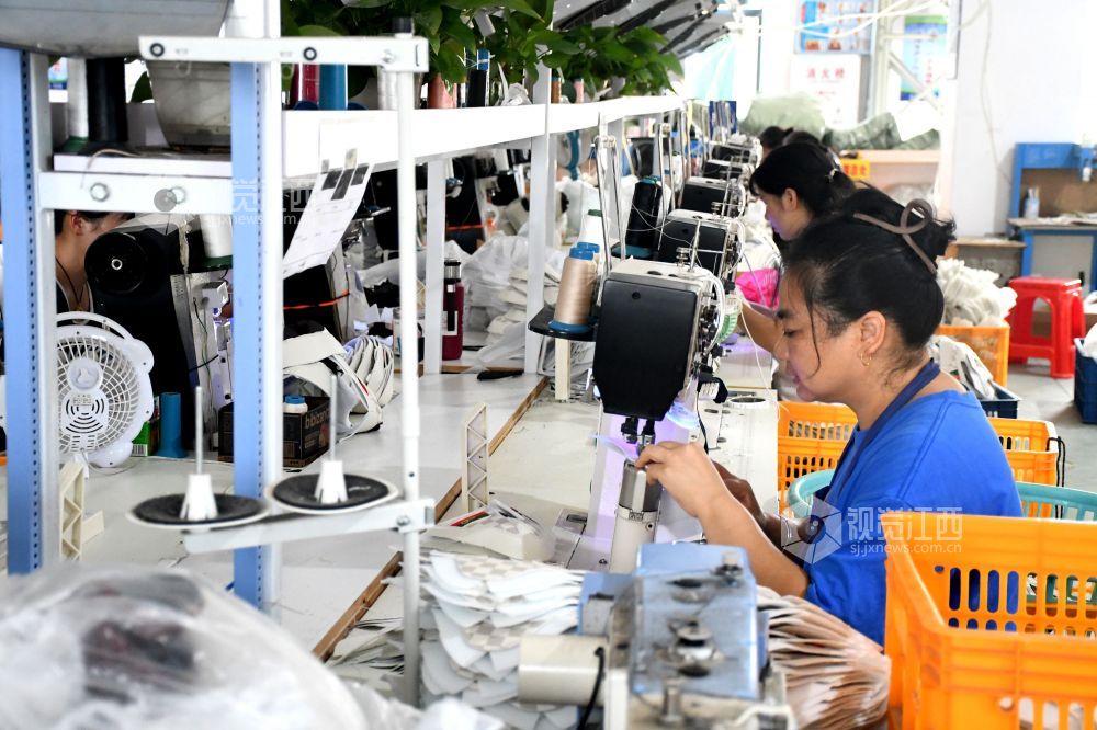 2025年9月9日,坐落在江西省抚州市南丰县市山镇西村村的宏胜特鞋业有限公司生产车间里,村民们在生产线上赶制订单。