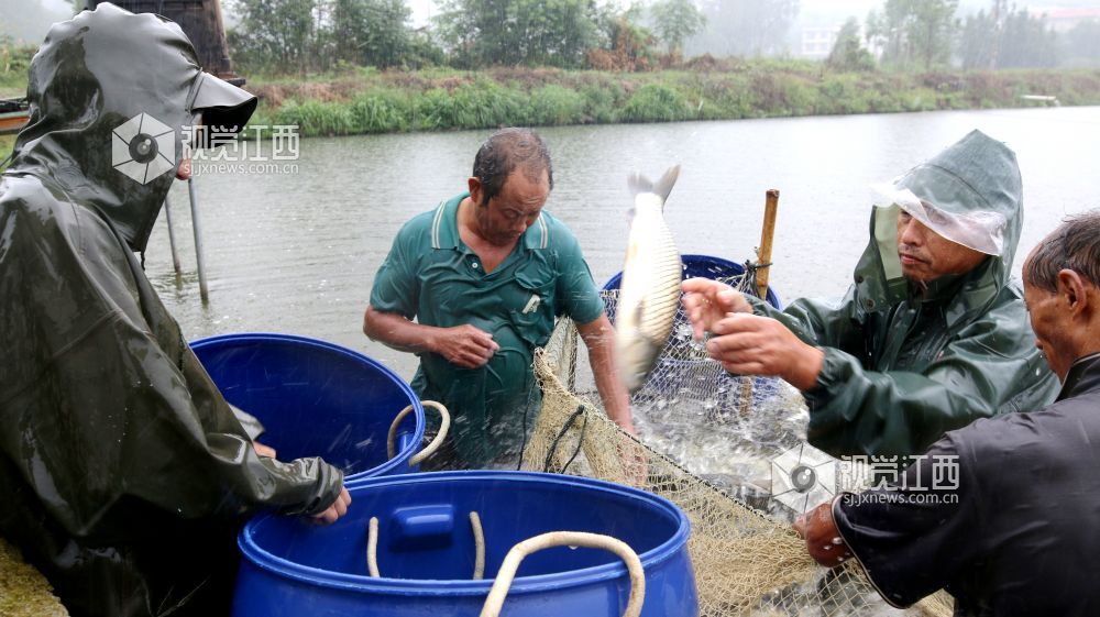 2025年9月23日,江西省遂川县宇坤子业生态农业公司的水产养殖基地内,员工们冒雨忙碌捕捞鲜鱼,将生态鱼快速分装,准备运往市场。该公司依托生态养殖模式,产出的水产品质优,深受欢迎,为当地渔业发展和农民增收添力。