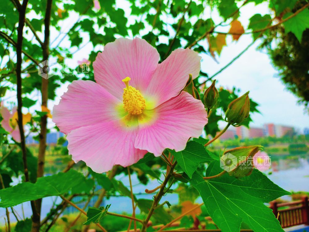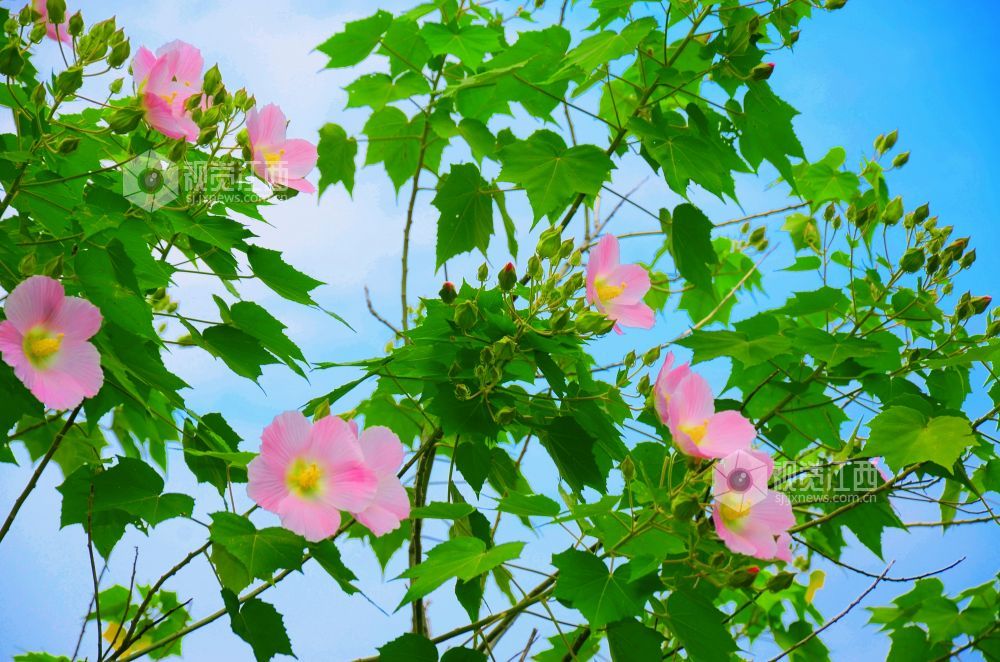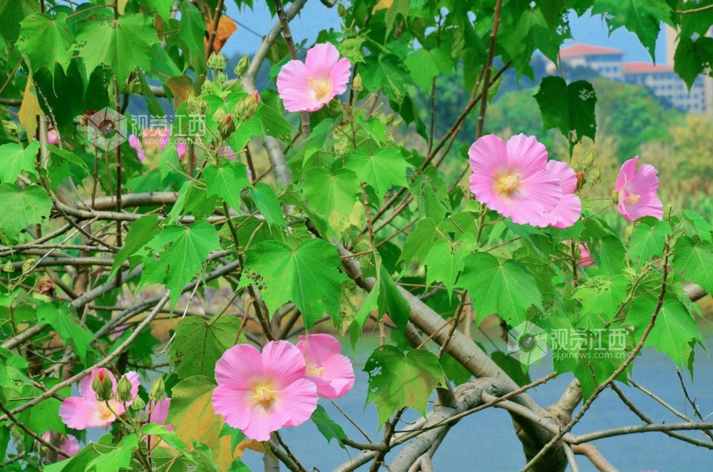 江西永新:木芙蓉花开俏枝头