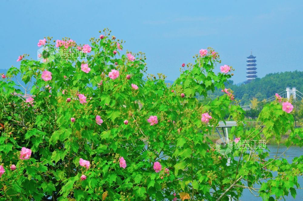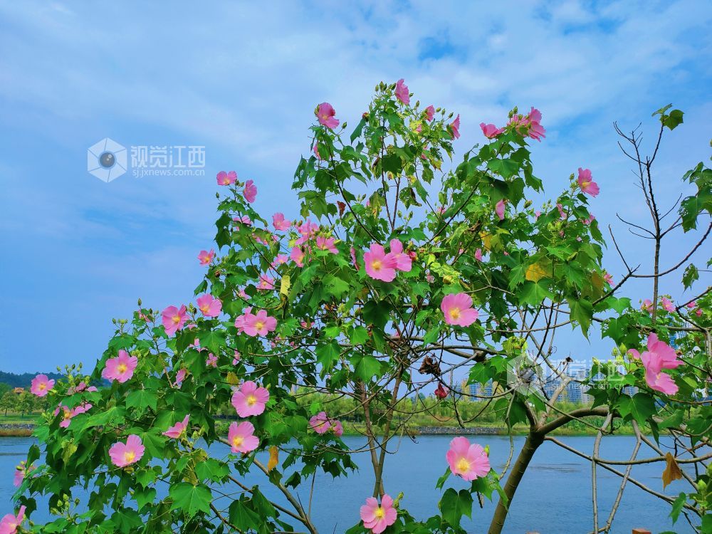 10月13日,江西省永新县滨江路上的木芙蓉迎风盛放。一树树繁花缀满枝头,或白或粉,深浅交错,在秋阳下争奇斗艳,为城市增添了一抹温柔的亮色。