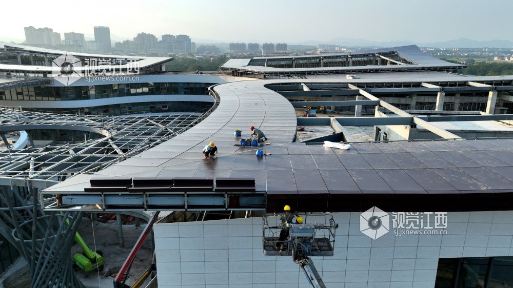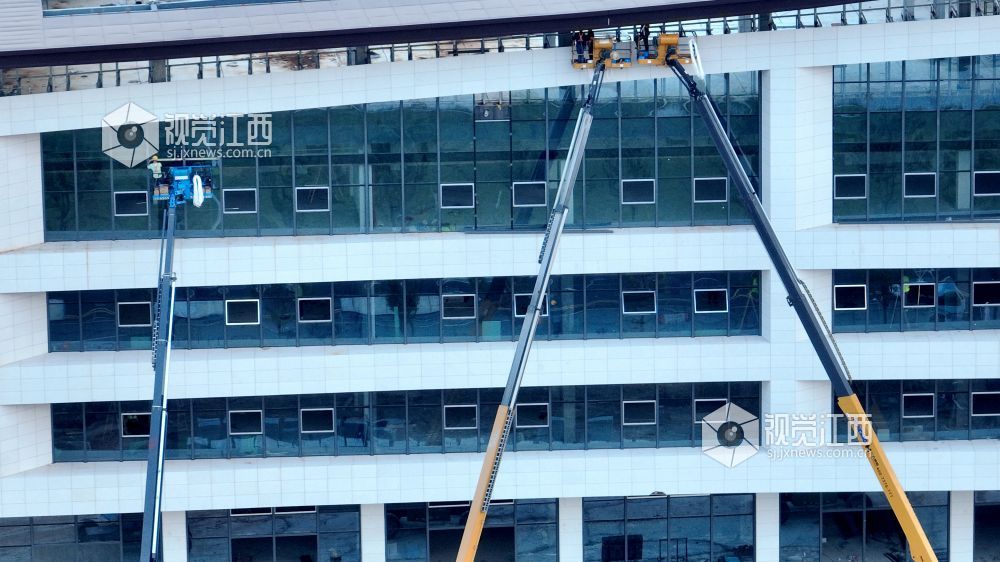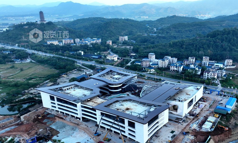 2025年10月16日,在江西省遂川县文化产业中心建设现场,施工人员在各个作业面忙碌作业。