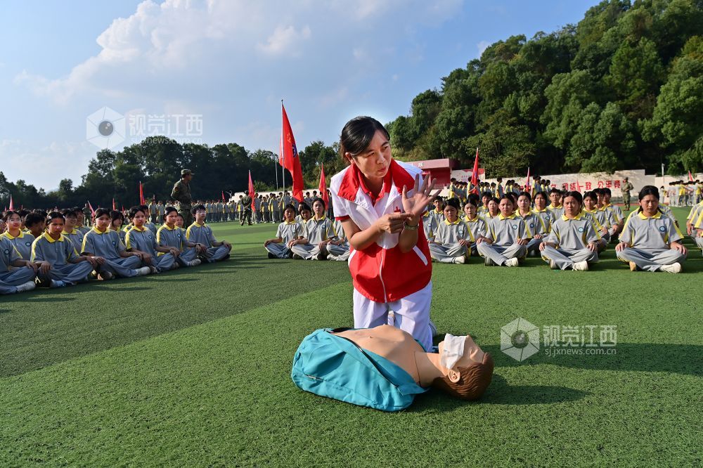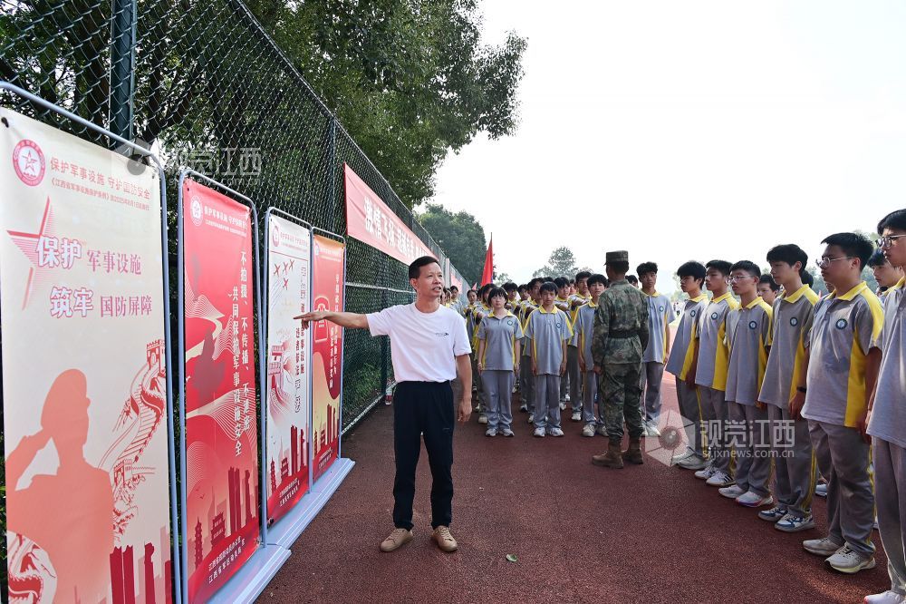 2025年10月17日,江西省宜春市万载中学操场上,万载县人武部联合国防动员办公室、消防救援大队、红十字会等部门通过开展国防教育辅导授课、军事训练课目展演、应急救护技能训练、军事设施保护展览、防空疏散应急演练、消防安全知识互动等形式举行“国防教育进校园”活动,增强广大青少年学生的国防观念,厚植爱国情怀,激发报国之志。