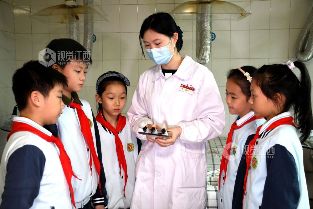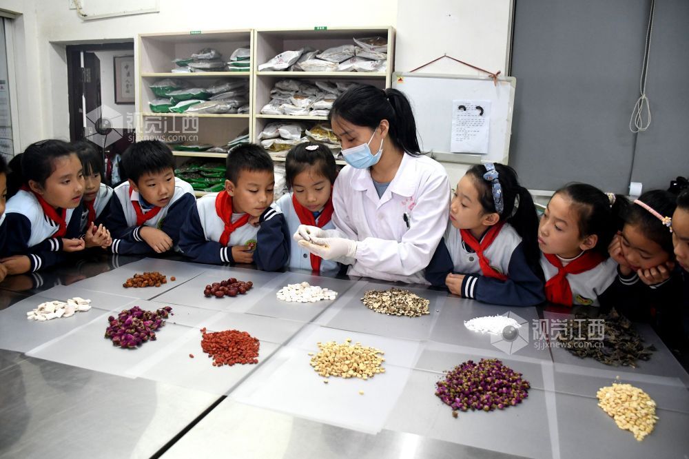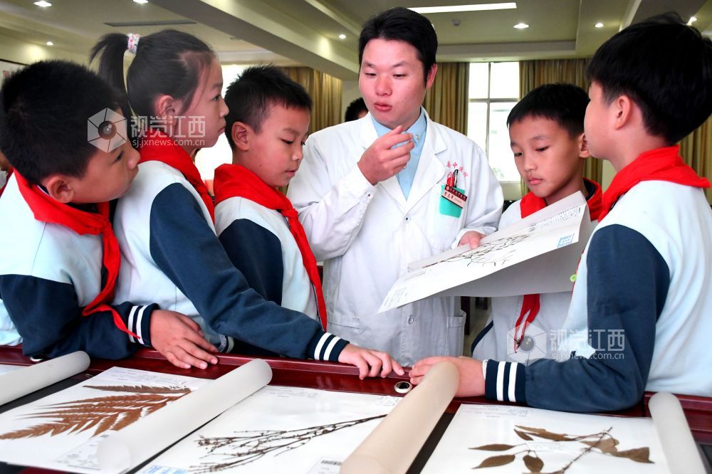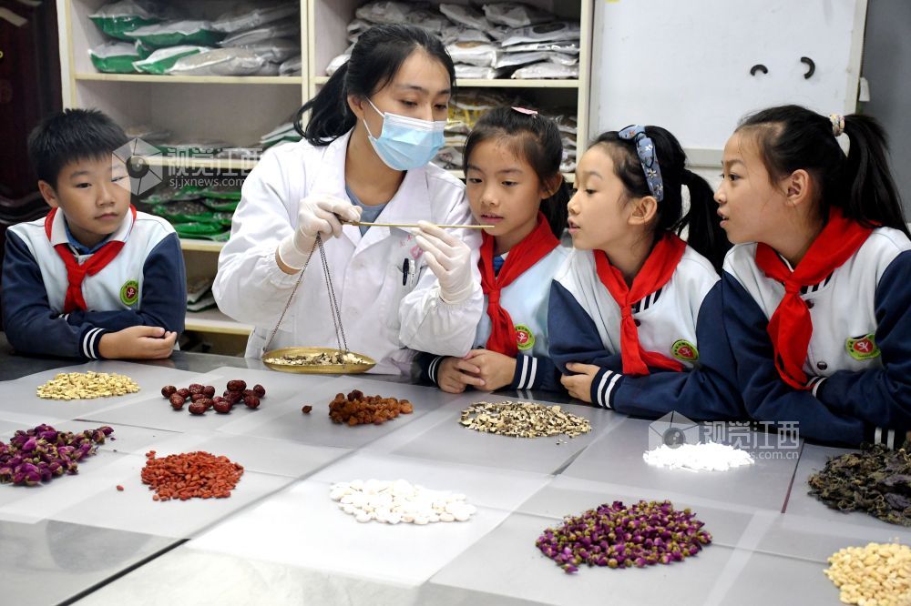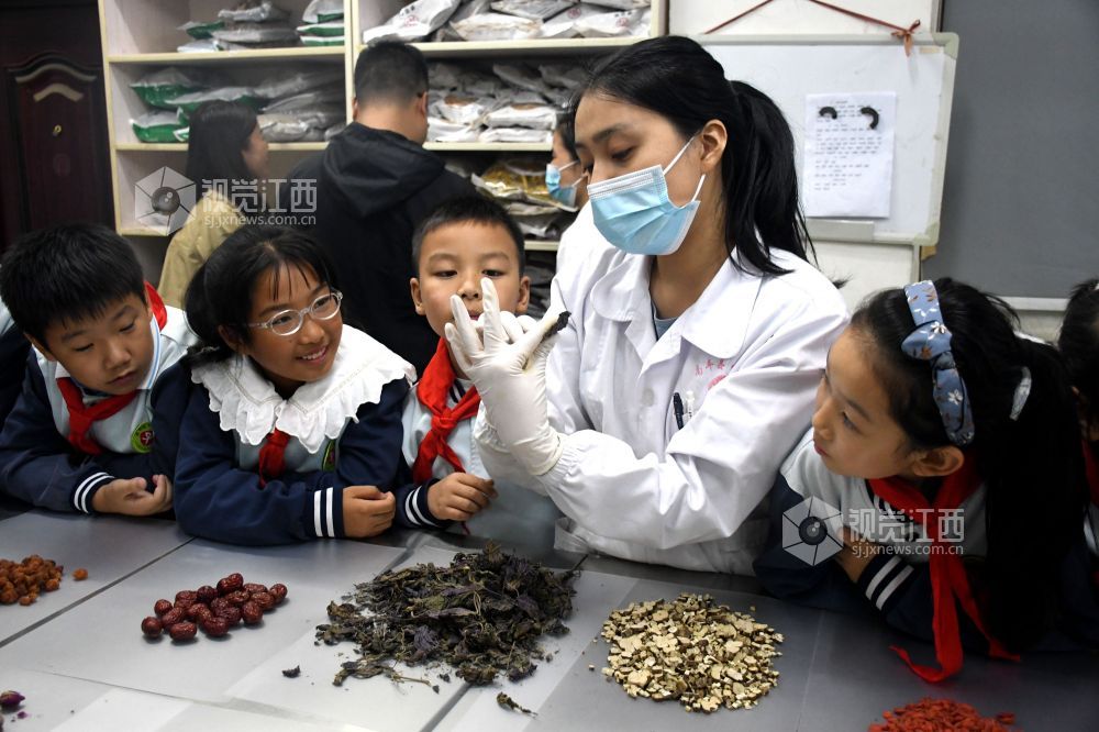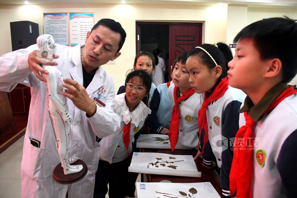 2025年10月21日下午,在江西省抚州市南丰县总医院中医院分院,来自子固小学的四(6)班的学生正在学习中医传统文化。