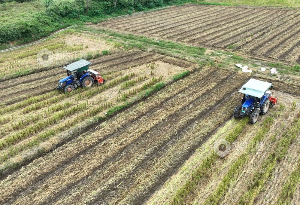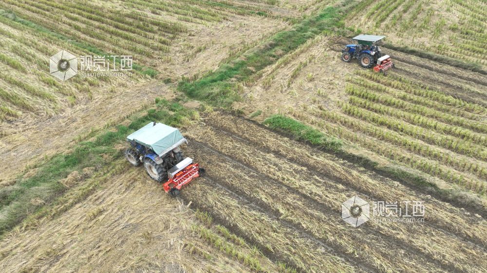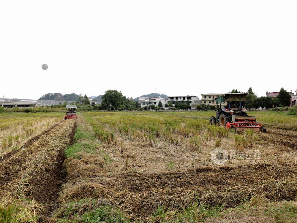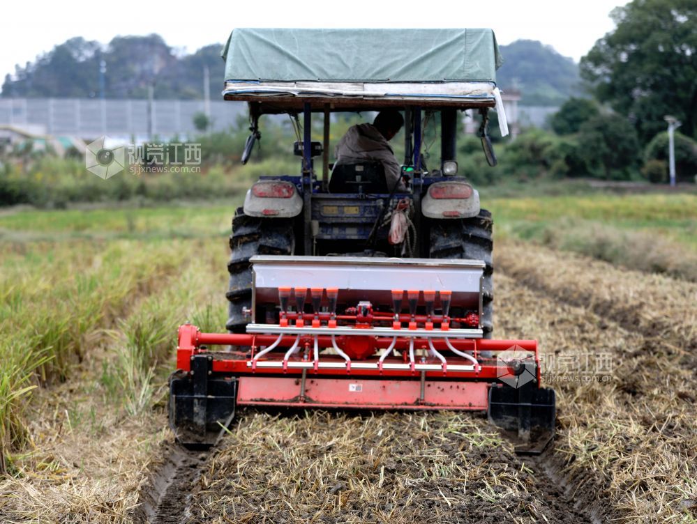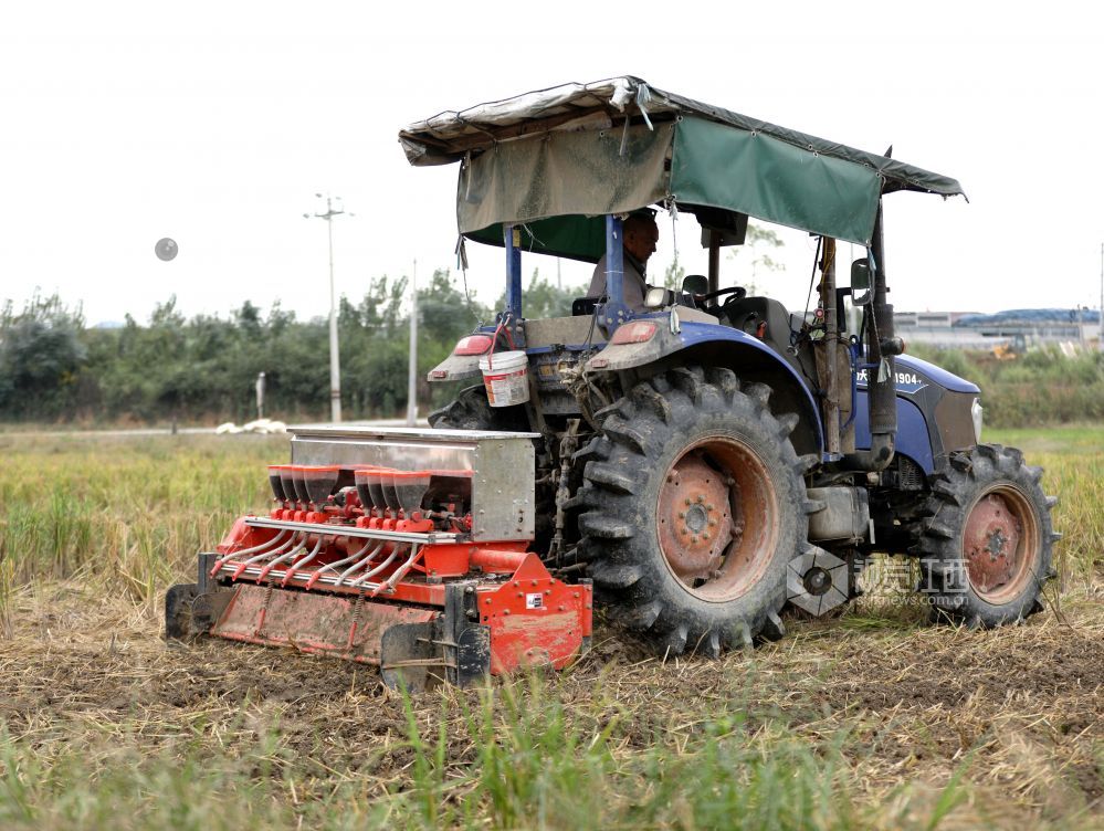 2025年10月22日,农机手驾驶农机在翻土播种油菜籽。正值秋收冬种时期,在江西省分宜县凤阳镇西廊村千亩稻田里,农机手熟练操控旋耕播种一体机,将一粒粒油菜种子通过管道均匀播入田间,呈现一派秋冬种耕播的繁忙景象。西廊村及早谋划,实施“稻油轮作”种植模式,提高土地综合利用率,让“冬闲田”变“增收田”。