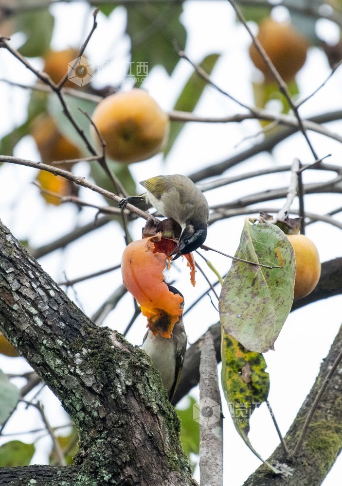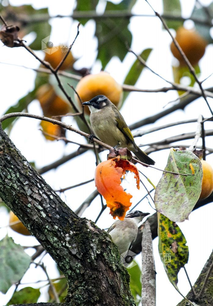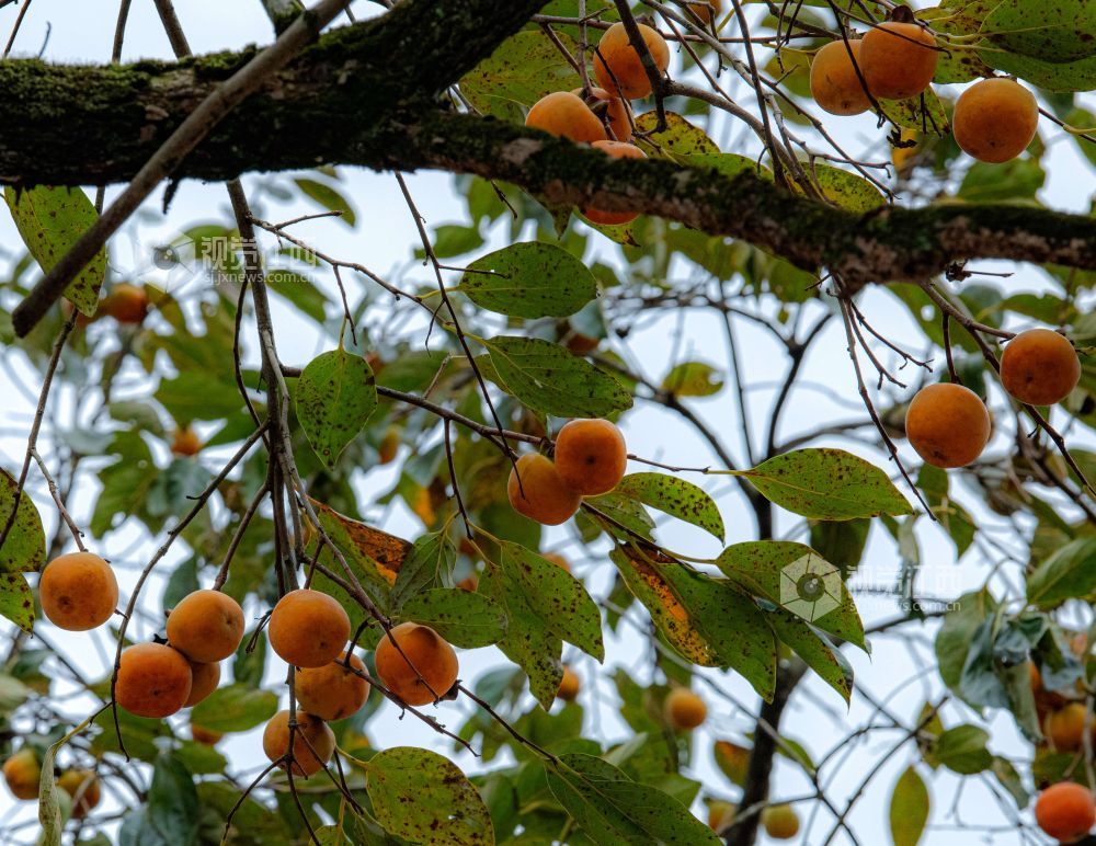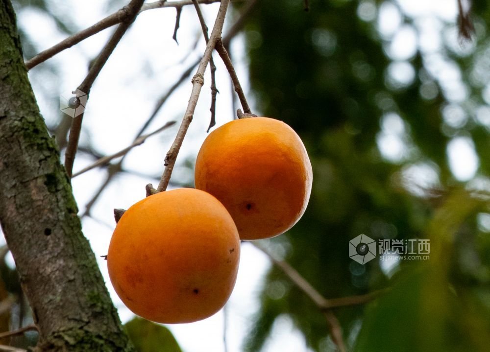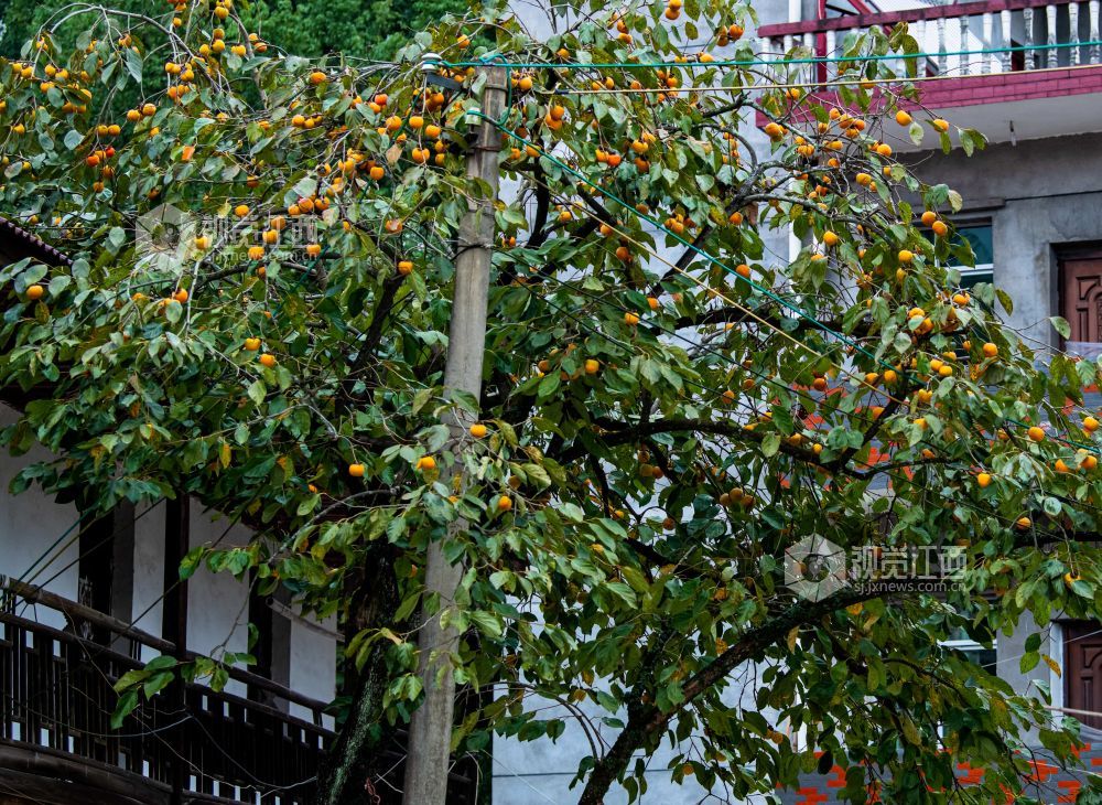 在江西省分宜县钤山镇下田村,农户家房前屋后的圆润饱满的柿子挂在枝头,小鸟也在树上叽喳嬉闹,啄吃成熟的柿子,为深秋的山村勾勒出一幅动人画卷。