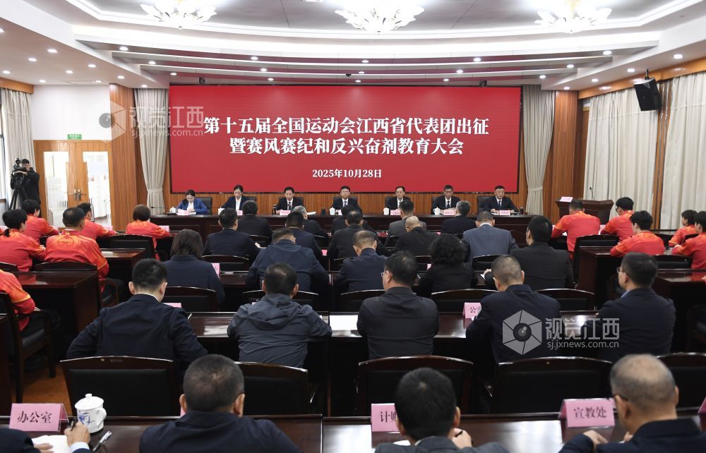 10月28日,第十五届全运会江西省代表团出征动员大会暨赛风赛纪、反兴奋剂教育大会今日在南昌举行。