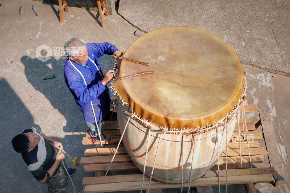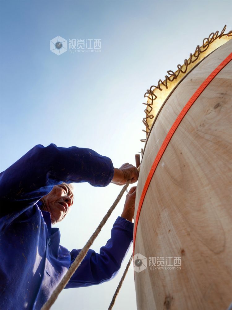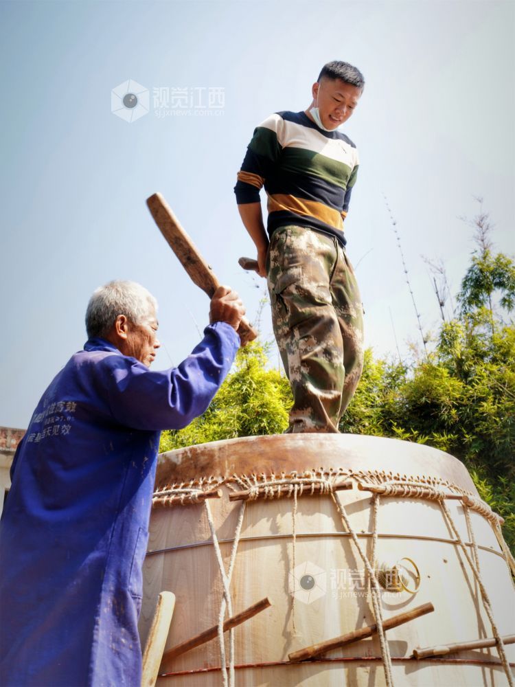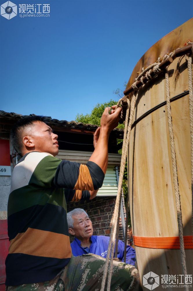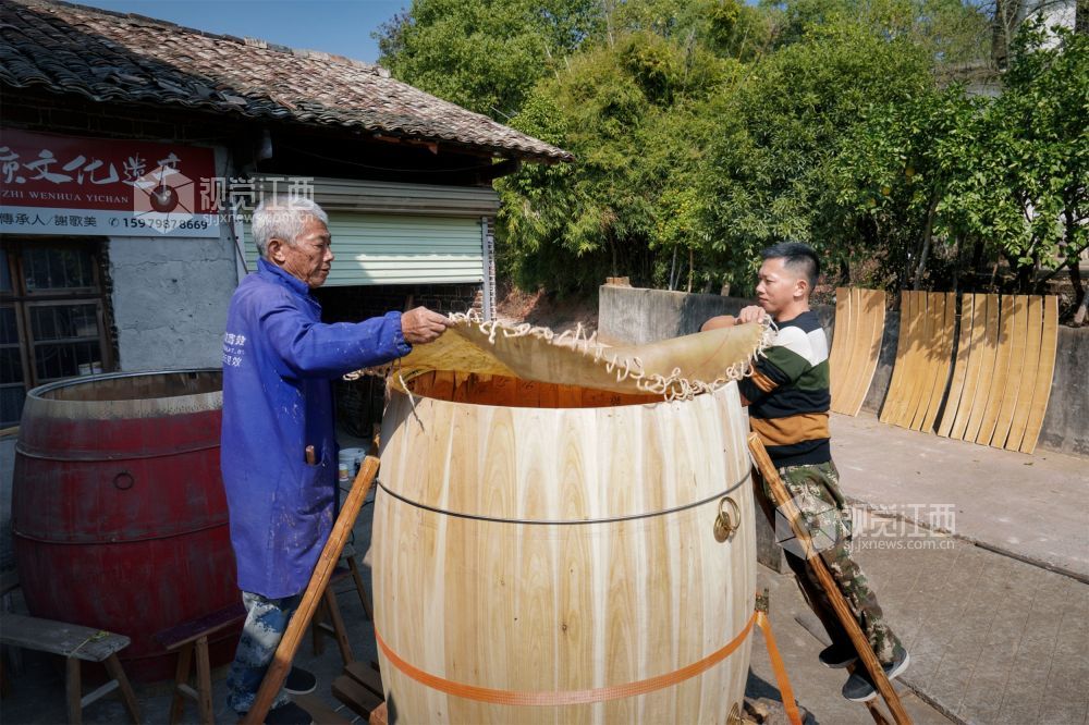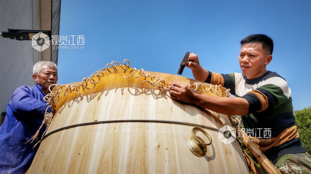每年临近冬季和春节前几个月是制作牛皮鼓最忙的季节。新余市水北牛皮鼓制作技艺传承人谢歌美四十余年来秉持老工艺,精心制作牛皮鼓,细心钻研,追求卓越。父子齐心,用坚守和匠心,让传统手工技艺得以传承并创新发展。2025年,谢歌美父子的水北牛皮鼓制作技艺被列为江西省省级非遗名录。