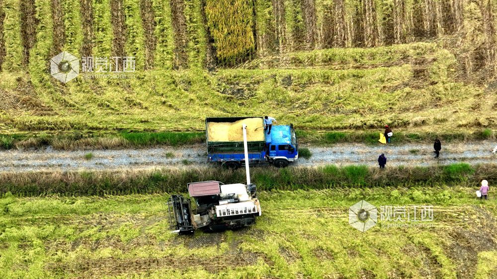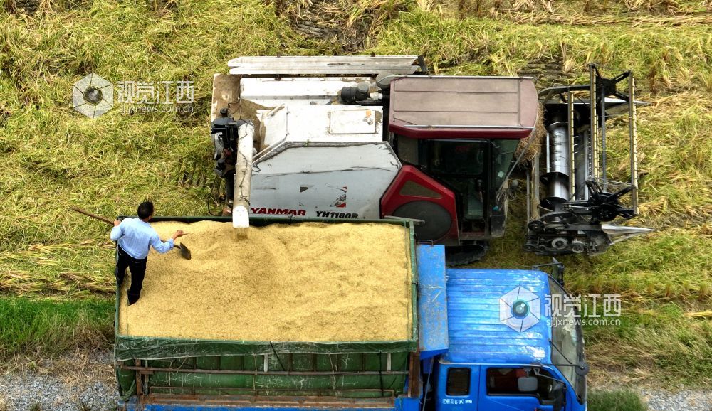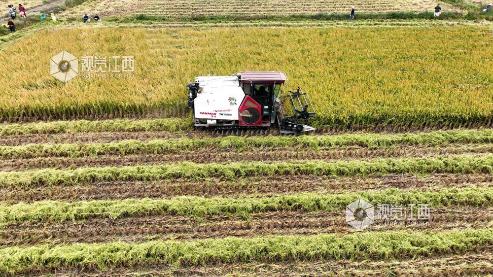 2025年10月29日,江西省遂川县枚江镇的稻田里金浪翻滚,收割机在田间穿梭作业,将饱满的稻穗尽收囊中。金秋时节,该县晚稻迎来收获季,农民们抢抓农时,与农机紧密配合,机械化收割的场景绘就了一幅充满希望的丰收画卷。