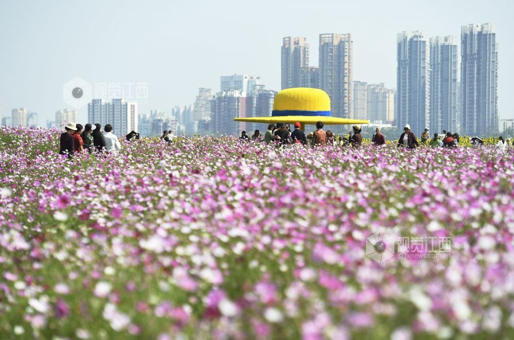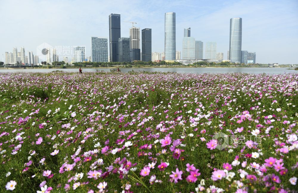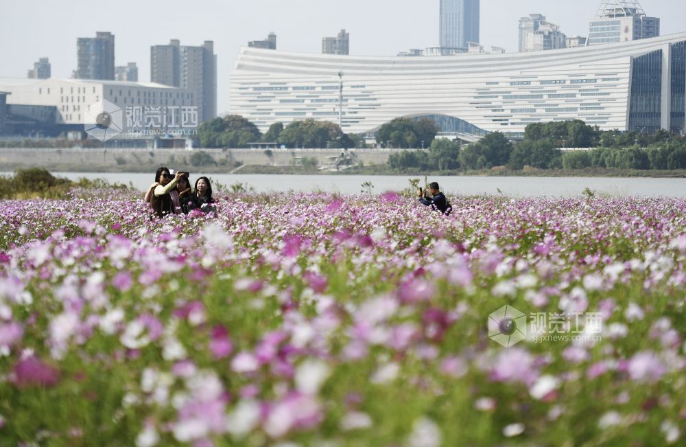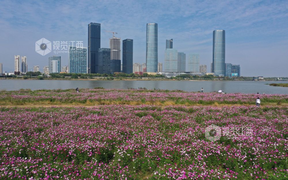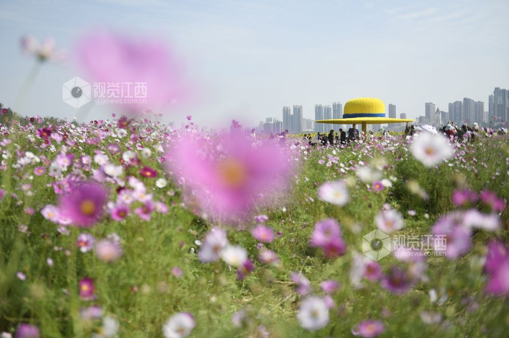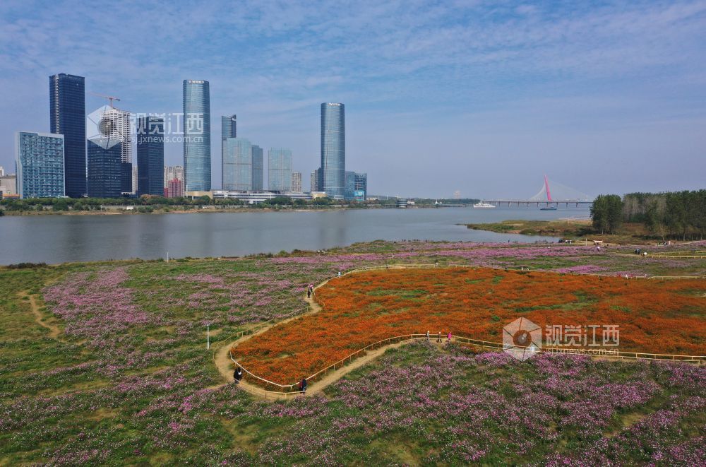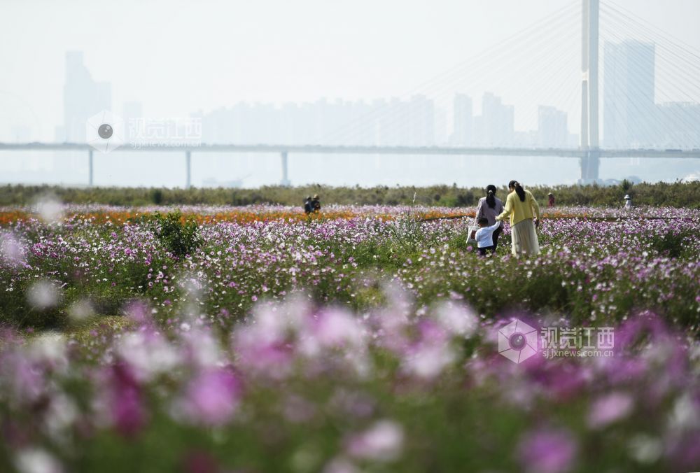 10月29日,江西省南昌市东湖区扬子洲镇龙沙湾百亩花海公园迎来盛花期。