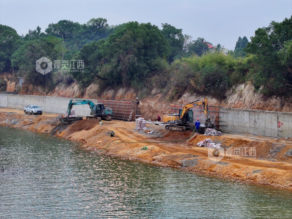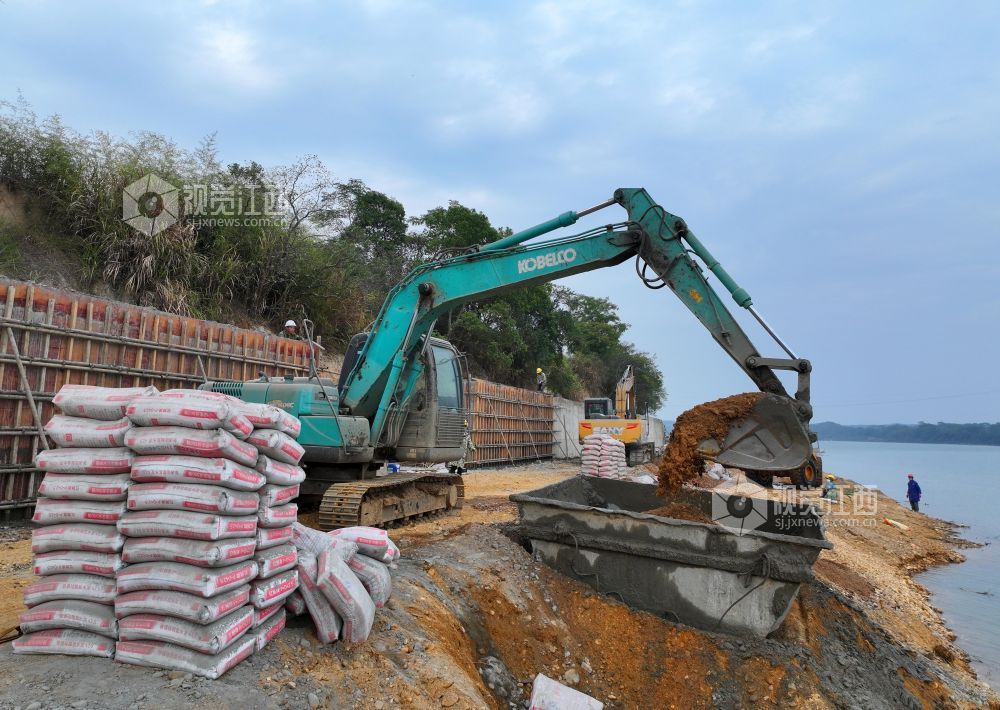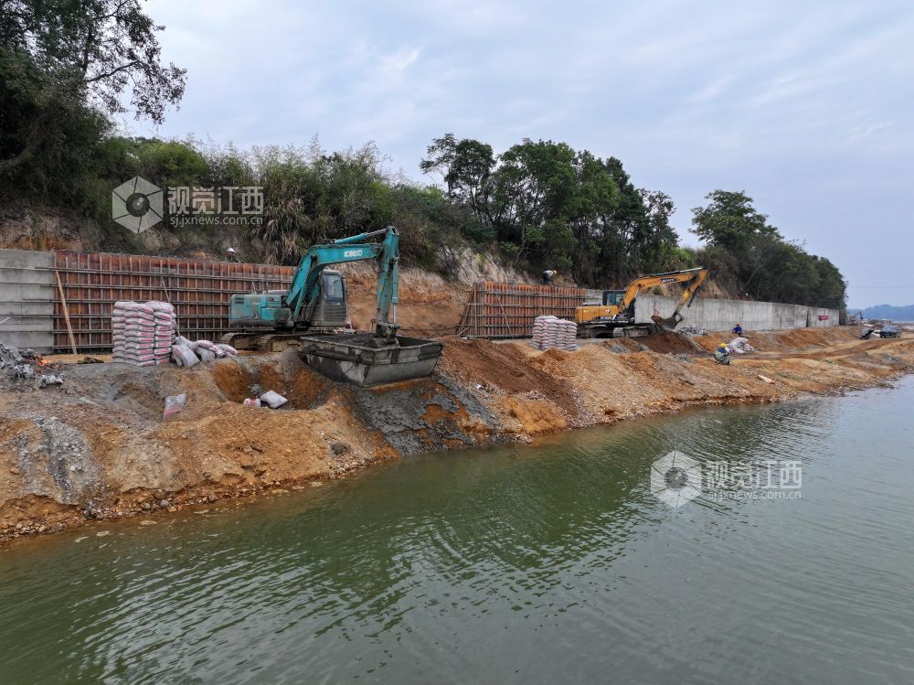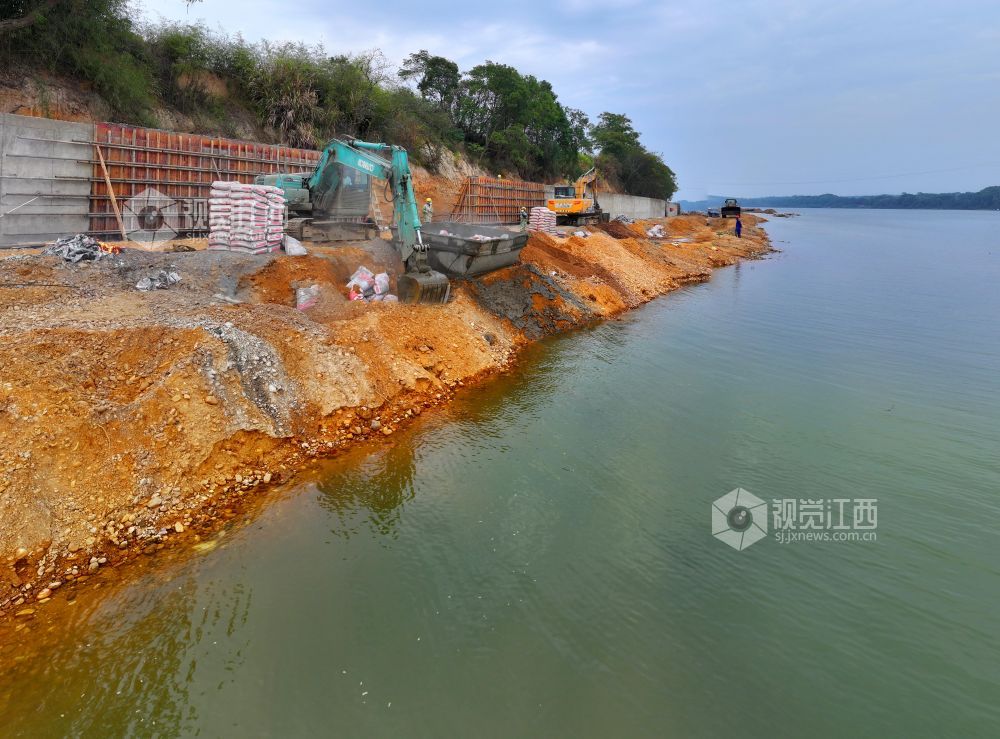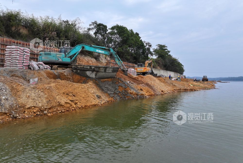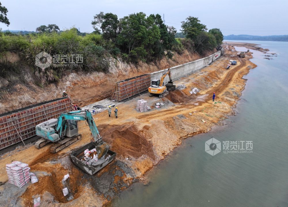 10月29日,江西省吉安市泰和县马市镇群爱村,机械正在进行筑墙护岸施工。江西泰和县积极开展水利冬修工作,对赣江岸防进行筑墙护堤,防洪防汛,保护耕地,防止水土流失,助力农业可持续发展。