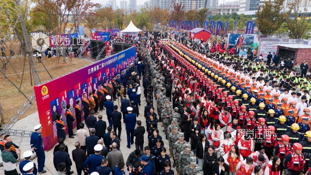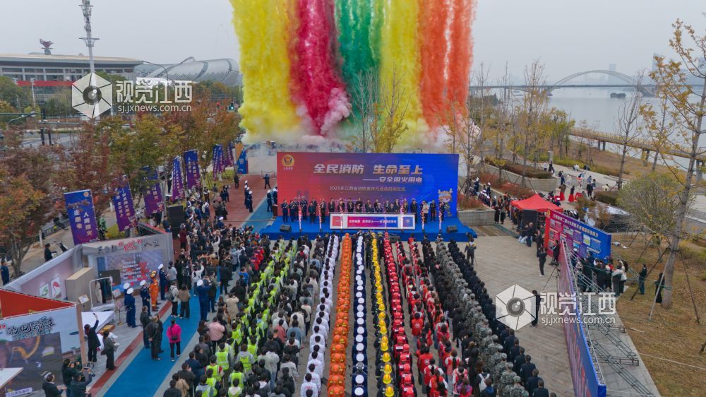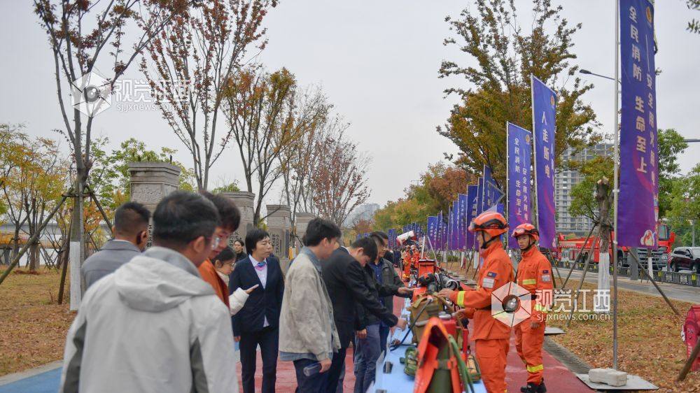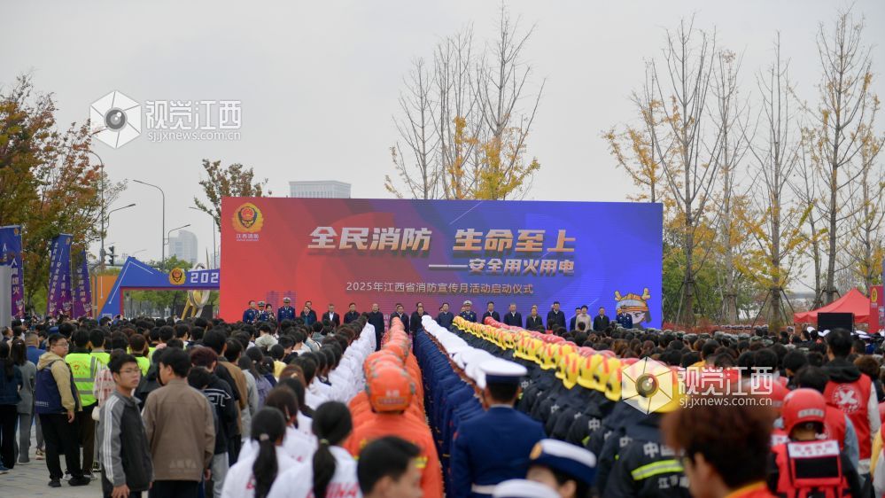 11月4日,江西省“消防宣传月”启动仪式在南昌水天消防广场举行。仪式上表彰了第二届119消防先进集体与个人,现场设置了文艺表演、火灾科普、装备展示、水域救援演示等多个展区。12所高校师生组成“消防宣传天团”,以创意形式普及消防知识;消防文创、智能机器人等吸引市民踊跃参与。