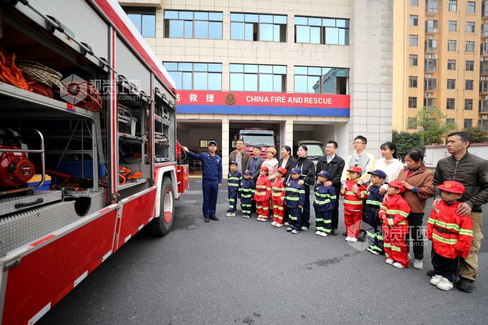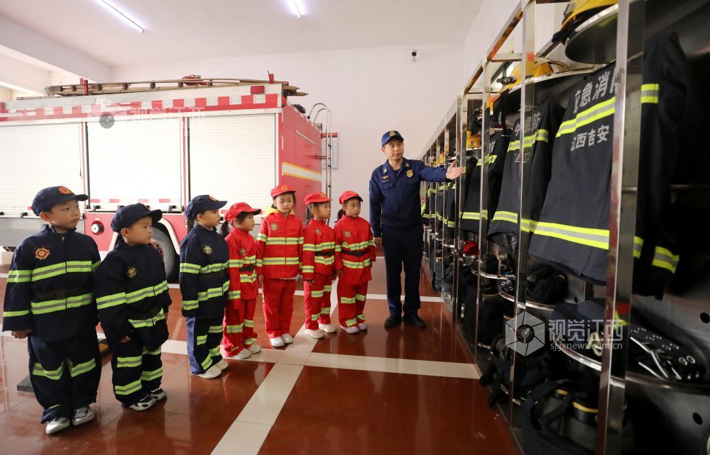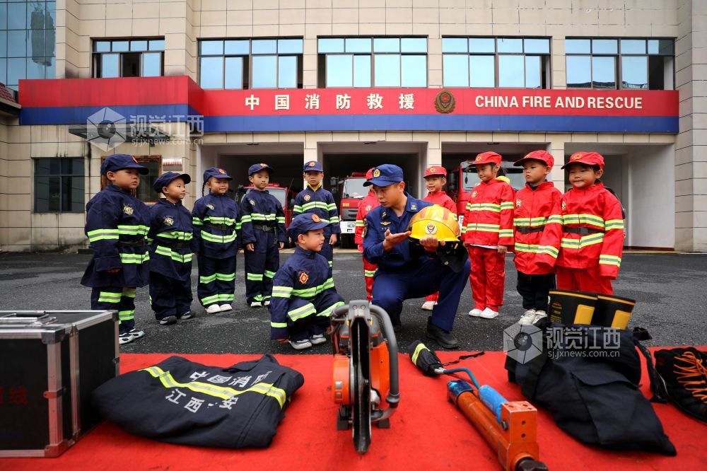 在第34个全国消防宣传日到来之际,江西省吉安市峡江县幼儿园组织开展“小手牵大手,探秘火焰蓝”活动,通过安全知识讲座、器材装备体验、应急救援演练等科目,帮助学生从小增强安全意识和自防自救能力。
