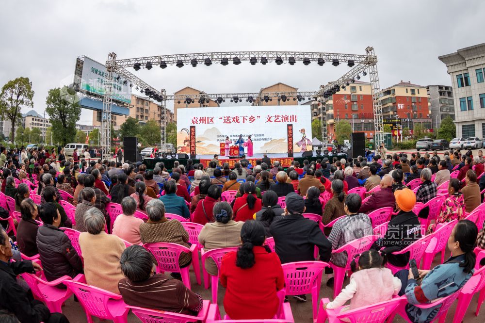 2025年11月5日,江西省宜春市袁州区彬江镇“送戏下乡”文化惠民展演中,演员在演出袁河锣鼓戏《奇相会》。近年来,江西省宜春市袁州区积极展文化志愿服务系列活动,通过文化下乡活动,将优秀剧目送到乡村,让村民在家门口乐享戏曲“大餐”。