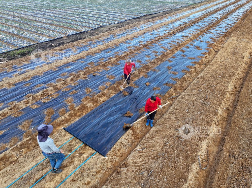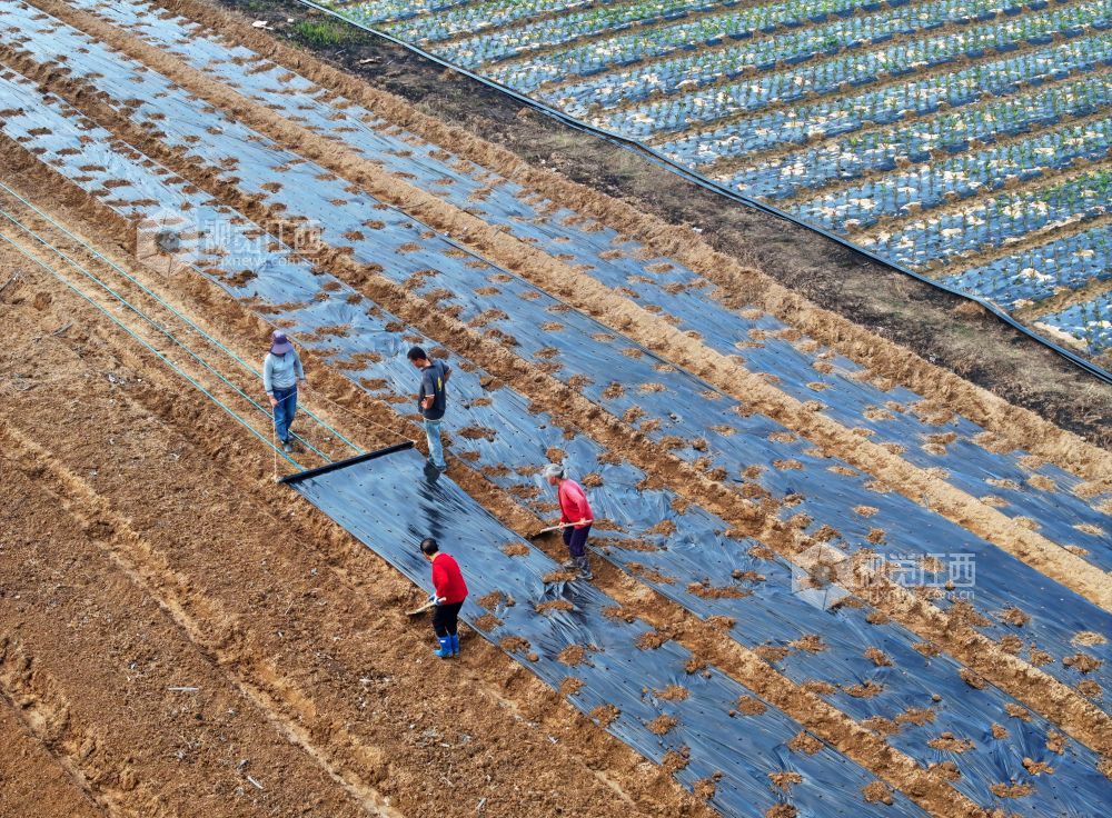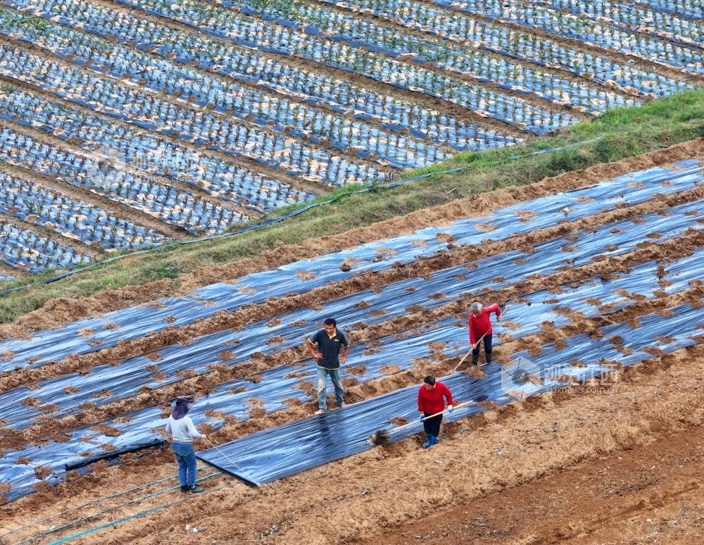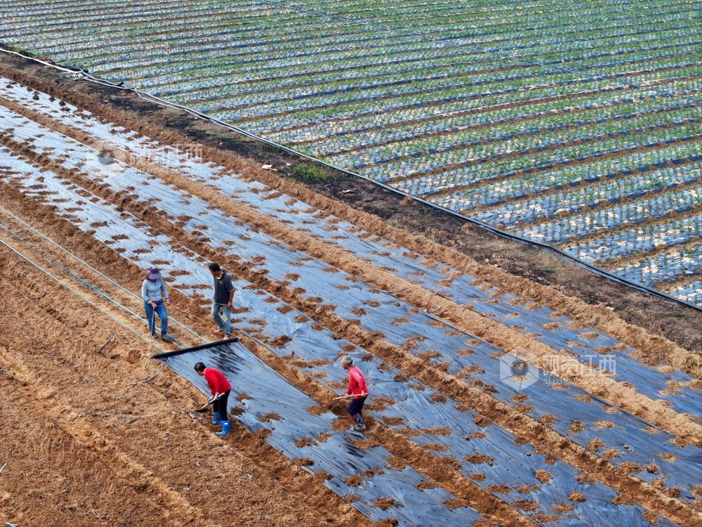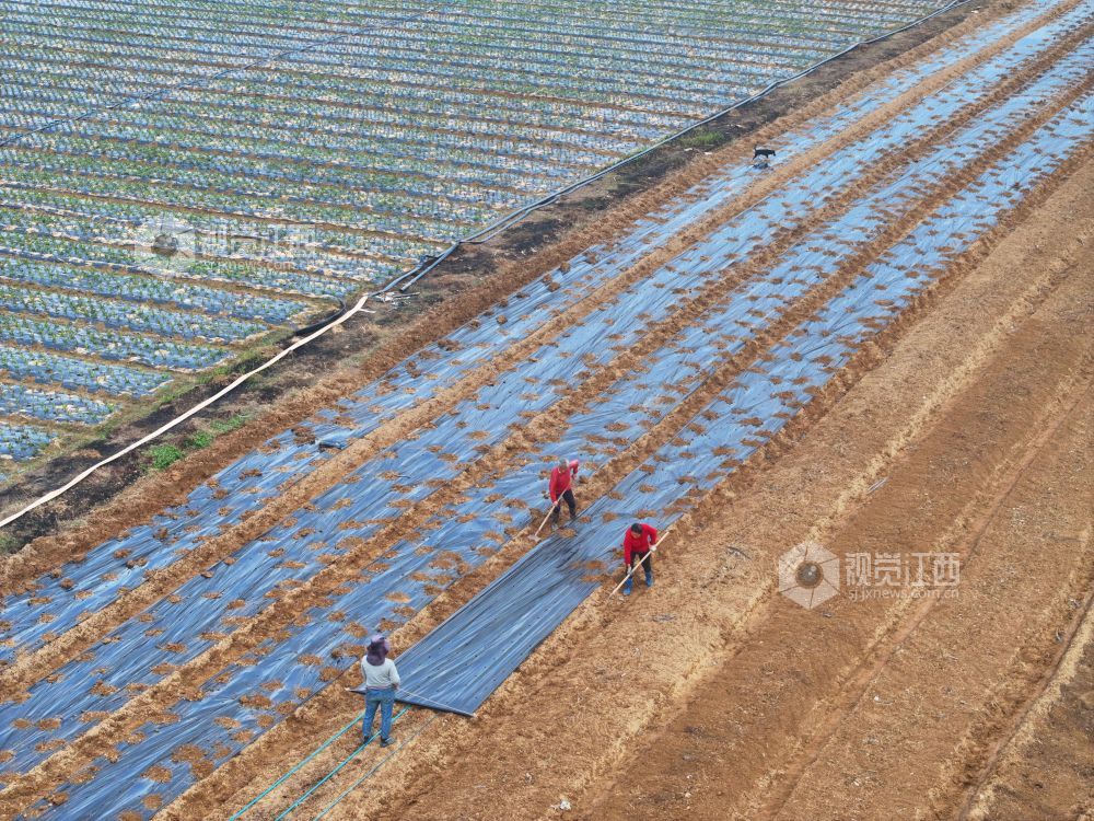 11月7日,江西省吉安市泰和县塘洲镇洲头村,农民正在田间盖膜,准备种植冬季作物。江西泰和县积极开展冬种冬播工作,引导农民翻耕整地,及时播种冬季作物,加强田间管理,确保冬季农业丰产增收。