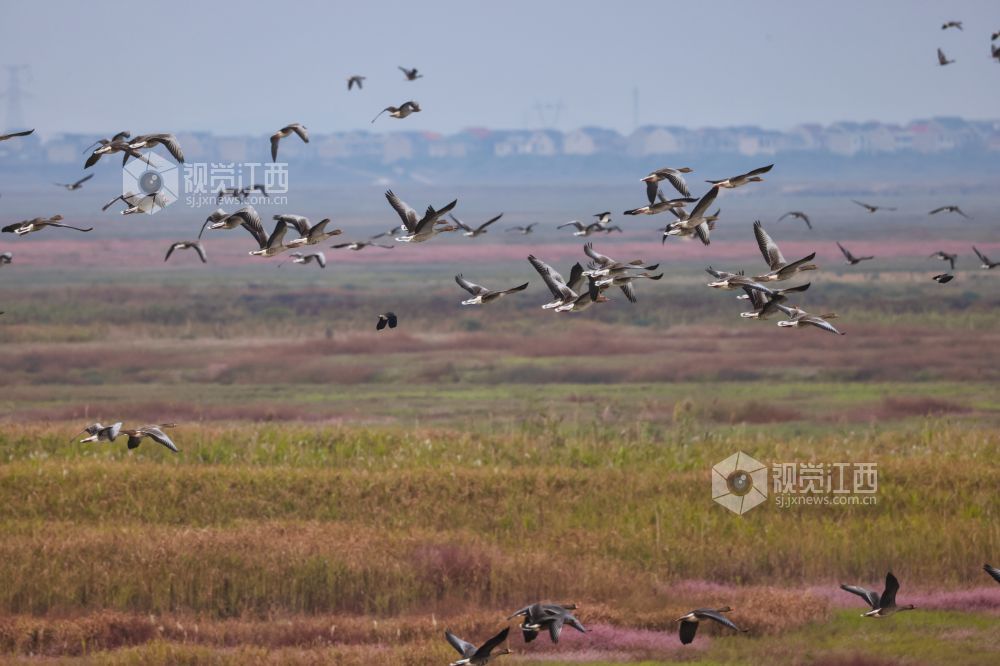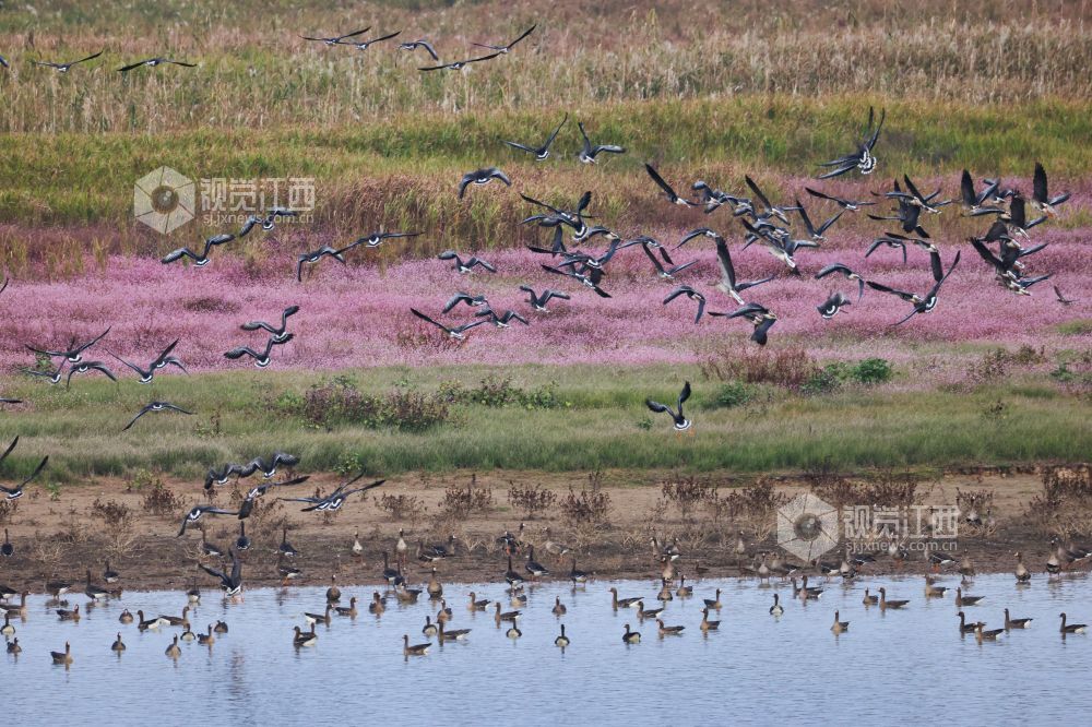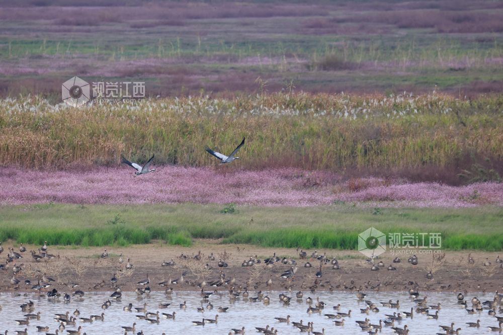 江西:鄱阳湖畔生态美 万鸟齐飞蓼花开