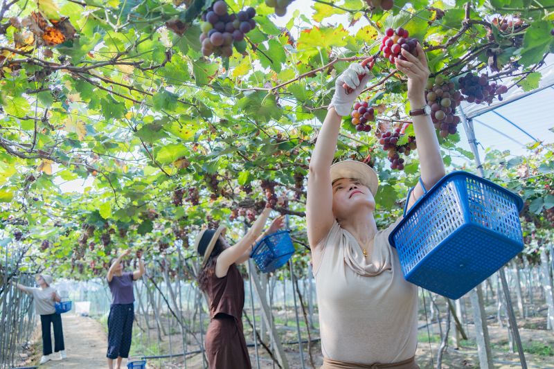 江西金溪:葡萄硕果挂满藤 游客体验采摘乐趣