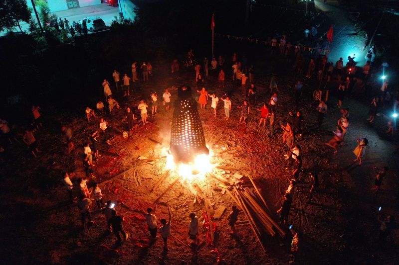 江西芦溪:烧“宝塔”庆中秋