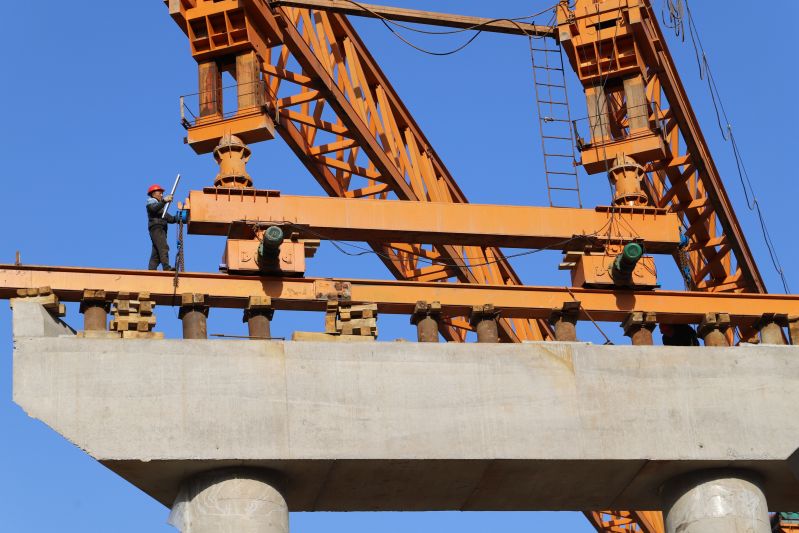 江西安福:旅游快速通道跨铁路大桥建设正酣