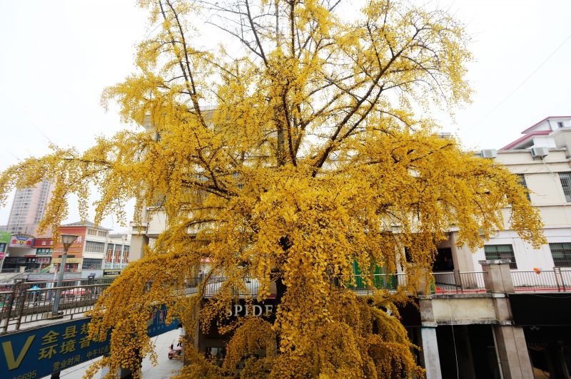 江西安福:闹市银杏成一景 华丽变身“黄金树”