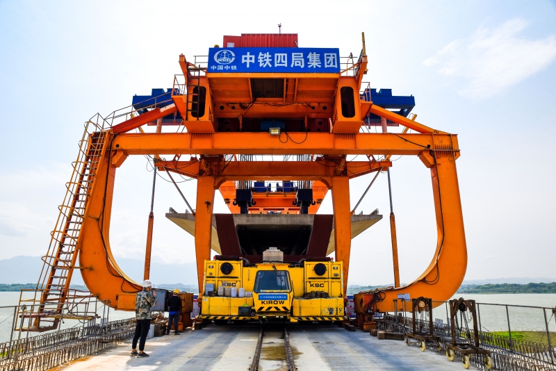 实拍江西赣州赣江特大桥 国内首座设计时速350公里大跨度高速铁路斜拉桥