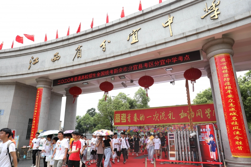 江西分宜:高考首场考试结束 考生轻松走出考场