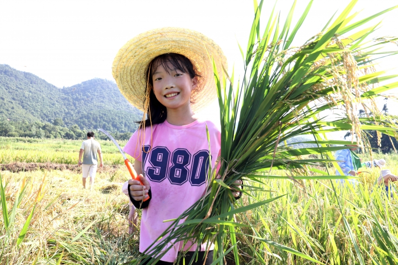 江西分宜:暑期收割稻谷 体验农耕之乐