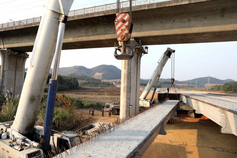 江西分宜:省道S222线控制性工程黄梅塘大桥顺利架通