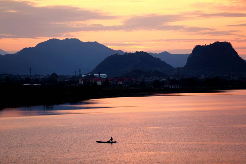江西分宜:冬日晚霞映袁河