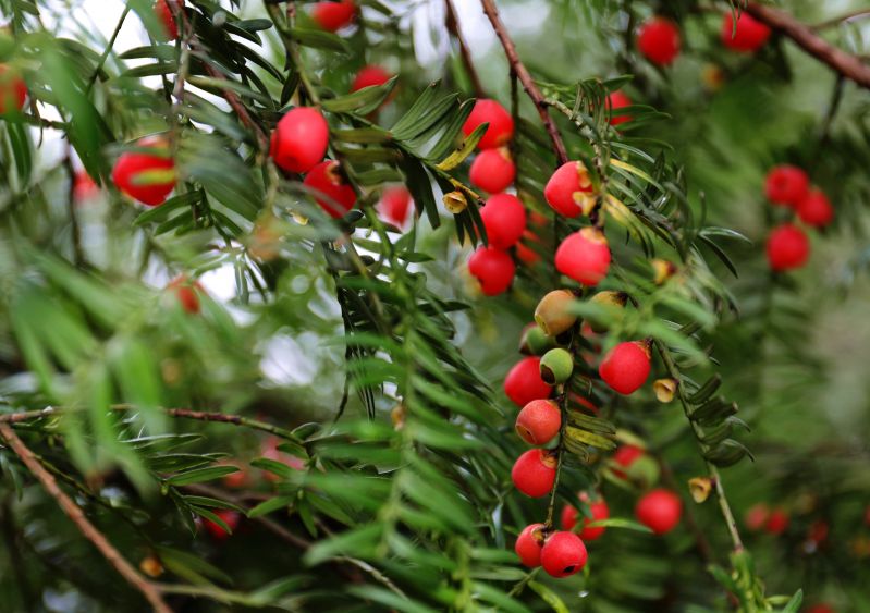 江西分宜:红豆杉果实挂满枝头